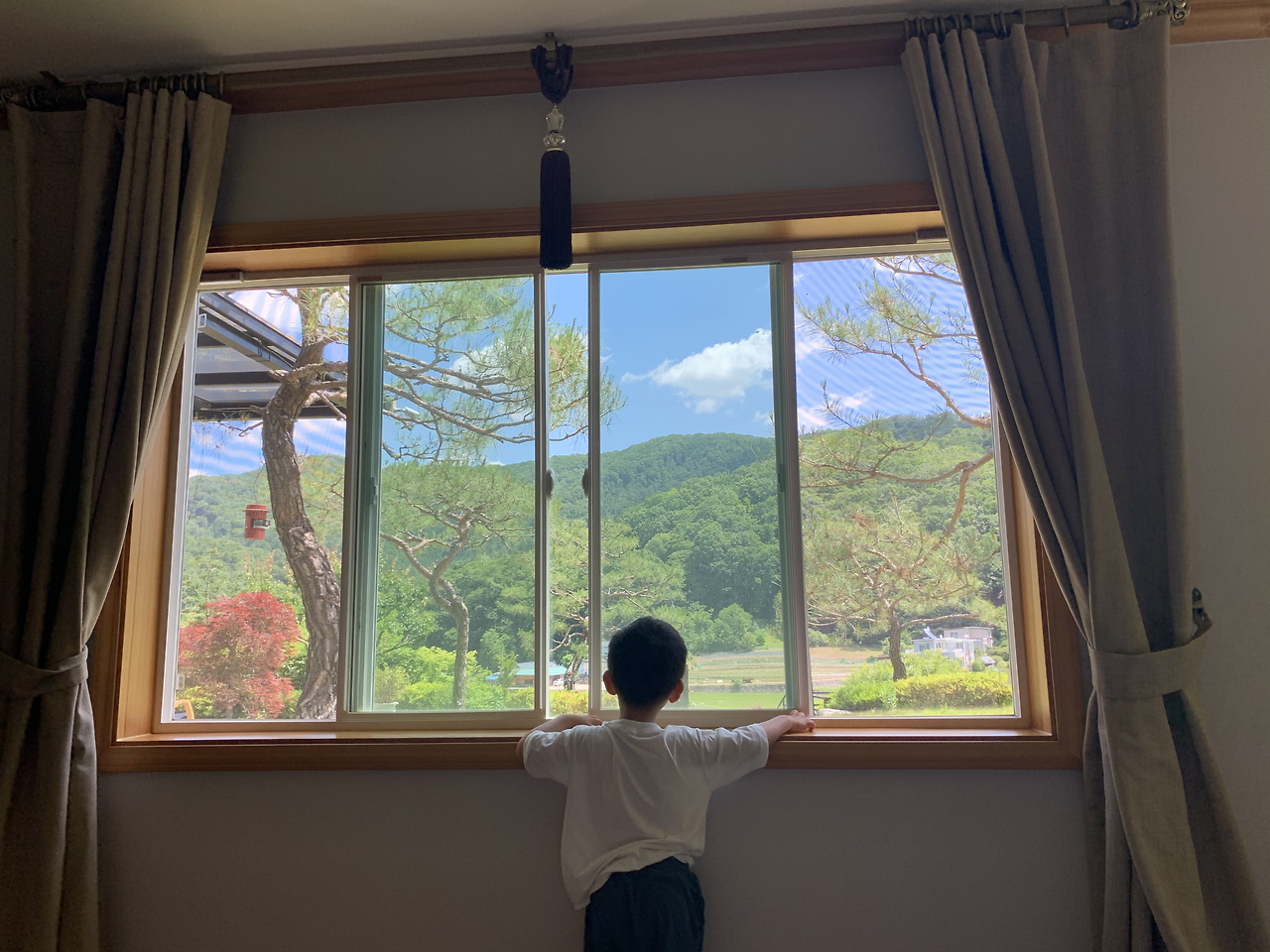 하루 종일 정원에서 뛰어논 아이는 미국에서와 달리 일찍 잠자리에 들었다. 미국에서 지난 3개월간 집에만 갇혀있던 아이에게 자연을 보여주고 싶어 한국행을 택했다. 늘 집에만 박혀 재택근무하는 엄마 옆에서 TV만 보던 아이는 오랜만에 마주한 자연이 퍽 좋은지 하루 종일 지치지도 않고 뛰어 놀았다. 그 모습을 지켜보는 것만으로도 뿌듯함이 몰려왔다. 미국에서 한국에 오기까지 고민도 많았고, 주변의 만류도 많았지만, 결국 오기를 잘했다는 생각이 들었다.