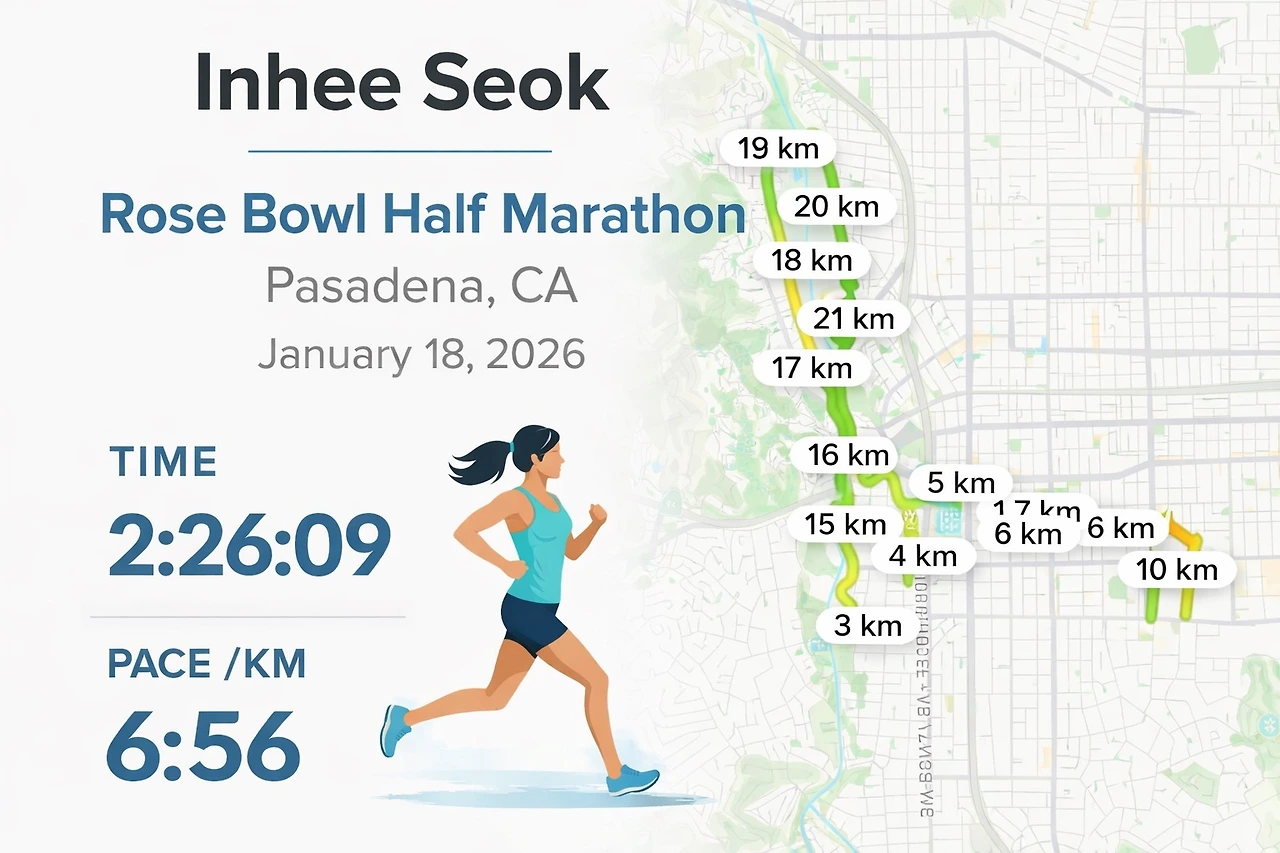 친구 두명과 함께 나가게 된 마라톤은 이름하여 '로즈보울 마라톤(Rose Bowl Marathon)'. LA 인근의 파사데나 지역을 달리는 이 마라톤은 곳곳에 높낮이가 있는 길이 있어 중상급 레벨의 코스로 여겨진다. 초보 러너들이 준비도 없이 무턱대고 나가는 건 비추천 되는 코스다.
