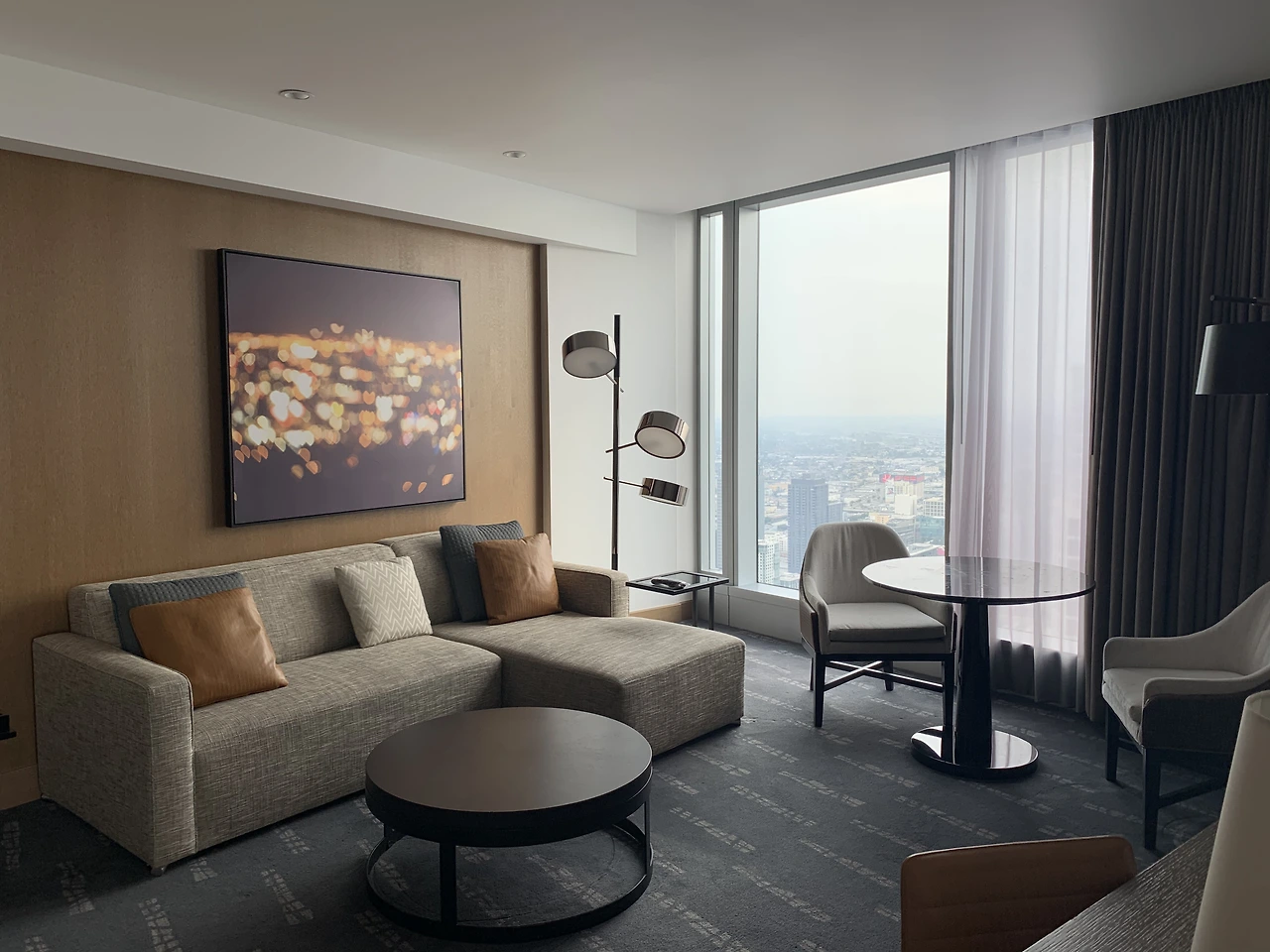 체크인을 하기 위해 70층 로비로 올라갔다. 로비에 손님은 거의 없었기 때문에 체크인은 금세 이뤄졌다. 프론트 호텔 직원들은 한 팀의 체크인을 마치면 다음 팀을 받기 전에 데스크 표면에 소독제를 뿌려 청결에 신경 쓰는 모습을 보였다. 덕분에 코로나19 시기에 과연 호텔이 안전할까, 하는 걱정이 어느 정도 수그러들었다.