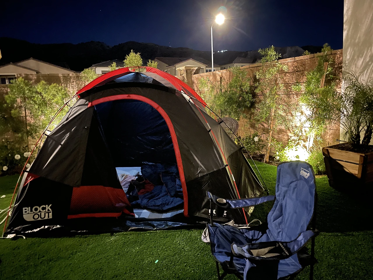 아들이 물었다. 남편은 아들에게 집에서라도 캠핑을 경험하게 해주겠다며, 그날로 텐트를 사왔다. 정원에 텐트를 설치하고 보니 그럴싸 했다. 캠핑이 별건가. 야외에서 텐트 쳐놓고, 고기 구워먹으면 되는 거 아닌가? 우린 집에서라도 제대로 캠핑 느낌을 내보기로 했다.