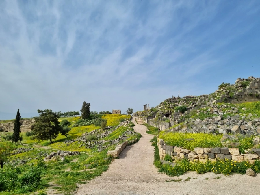 아라이스 호수에서 먹은 도시락과 움까이스에서 먹은 간식으로 가득 찬 배를 소화시킬 겸 움까이스를 쭉 돌아보았다. 쭉 돌았다는 표현을 썼지만 실제로는 움까이스 중 일부만 봤다. 다른 쪽에 또 즐길 것이 있다고 했지만 우리는 다시 암만으로 돌아가야 하기 때문에 조금 서둘러 움직였다. 이름 모를 노란색 꽃이 곳곳에 피었는데 초록빛보다 더 강렬했다. 요르단 여행하면서 초록빛 자연을 즐기고 싶다면 봄에 요르단 북부에 가야 한다는 것을 알게 되었다. 회의에서 마주친 현지인 덕분에 국경지대도 가고, 역사·종교적으로 유명한 움까이스에서 이스라엘과 시리아의 멋진 풍경도 본 하루였다.