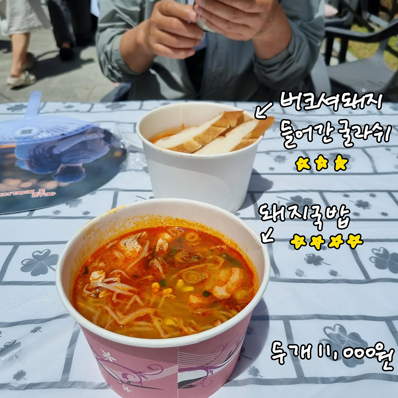 나는 국밥, 굴라쉬를 맛보았는데 버크셔 돼지가 부드럽고 맛있는 건 알겠더라. 후식으로는 남원시에 있는 식혜업체에서 만든 덜 단 식혜(한살림), 사탕수수 음료수, 튀르키예 아이스크림(돈두르마). 비 예보가 있었는데 나는야 역시 날씨요정. 비는커녕 화창하기만 했다. 내년이 기대되는 축제.