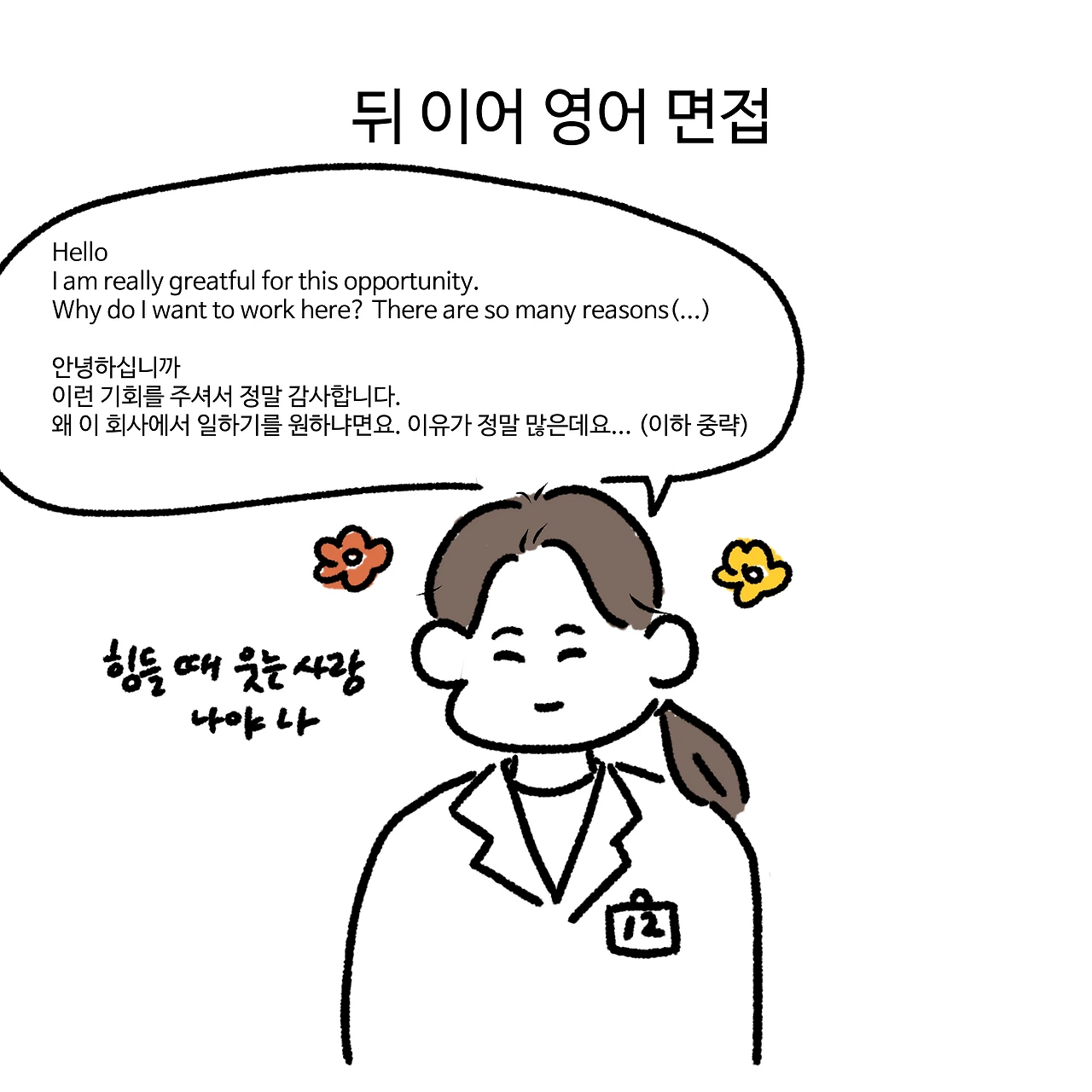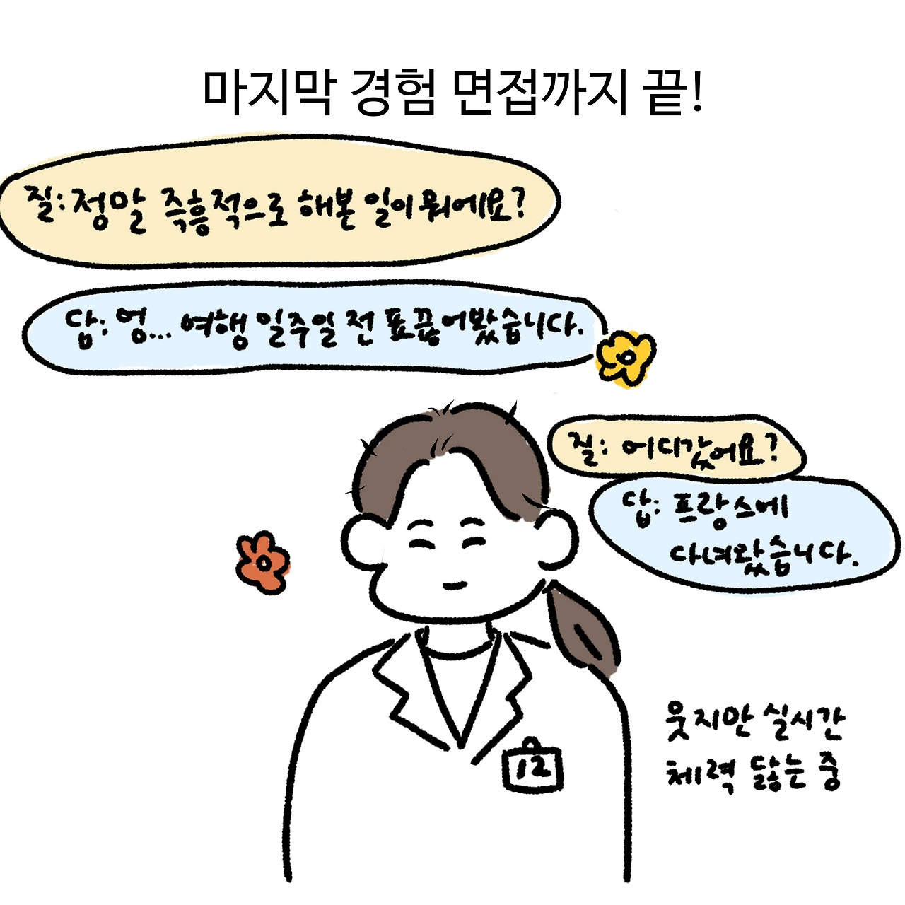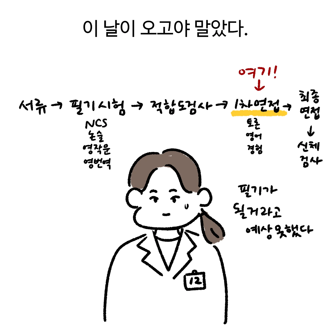 그래도 내가 희망하는 기업에 서류 합격, 필기시험, 1차 면접 기회를 얻은 것으로 만족. 다음에는 최종 합격을 해야 할 것 같다. 조금 더 경력 쌓아서 재응시 갑니다.