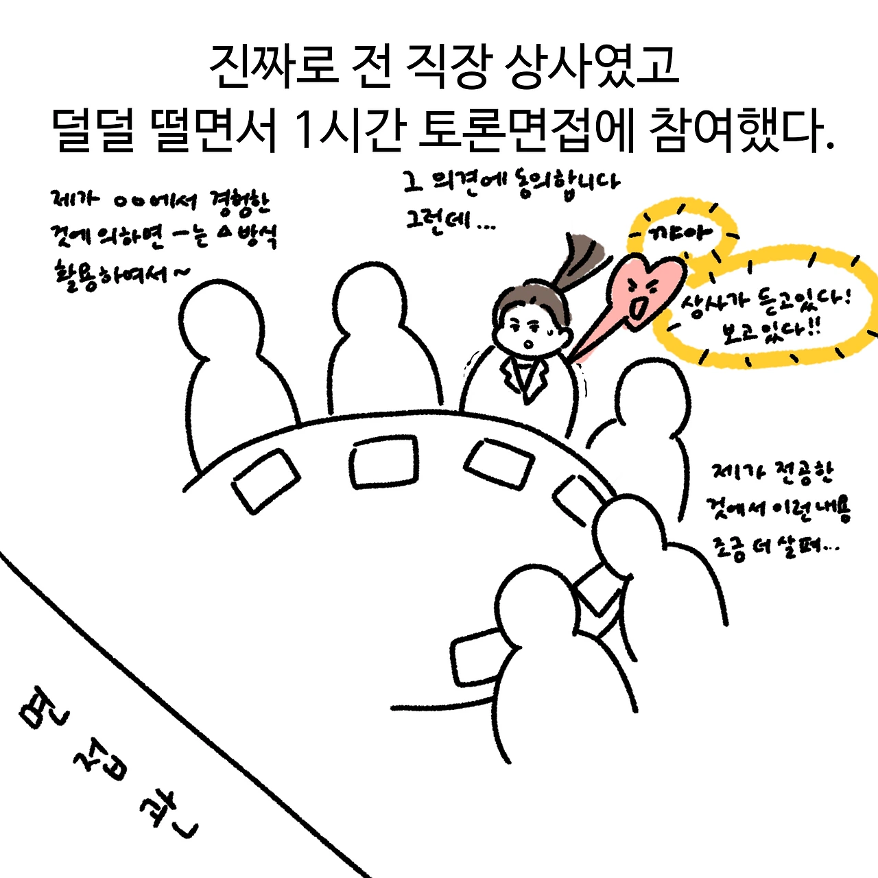 결과부터 이야기하면 불합격 통보를 받았다. 토론 면접에서 제대로 된 기조발언을 하지 못한 것과 논리적으로 토론을 이끌어 가는 능력이 부족했다. 경험 면접에서도 조금 더 구체적인 답변을 하지 못한 것도 문제. 결론, 종합적으로 문제가 많았다~