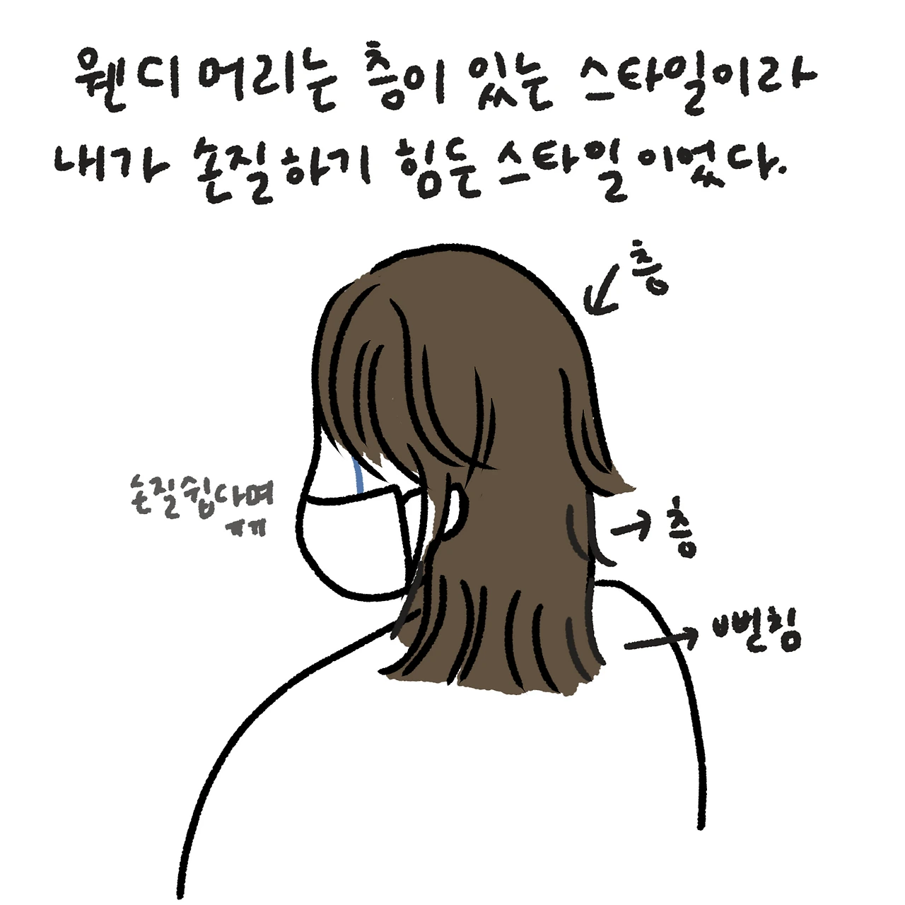 지금도 여전히 뻗치는 머리. 신기하게도 고데기를 갖다 대는 순간 더 망한다. 보통 손질하면 나아지지 않나? 내 마음대로 할 수 게 꼭 바람 같다. 그렇다. 나는 웬디가 아니라 윈디다.