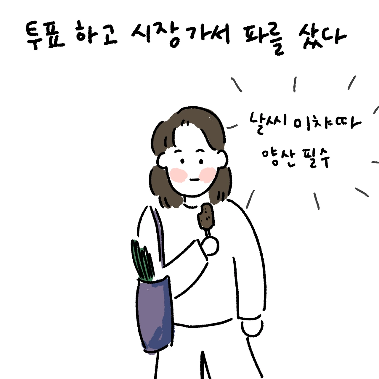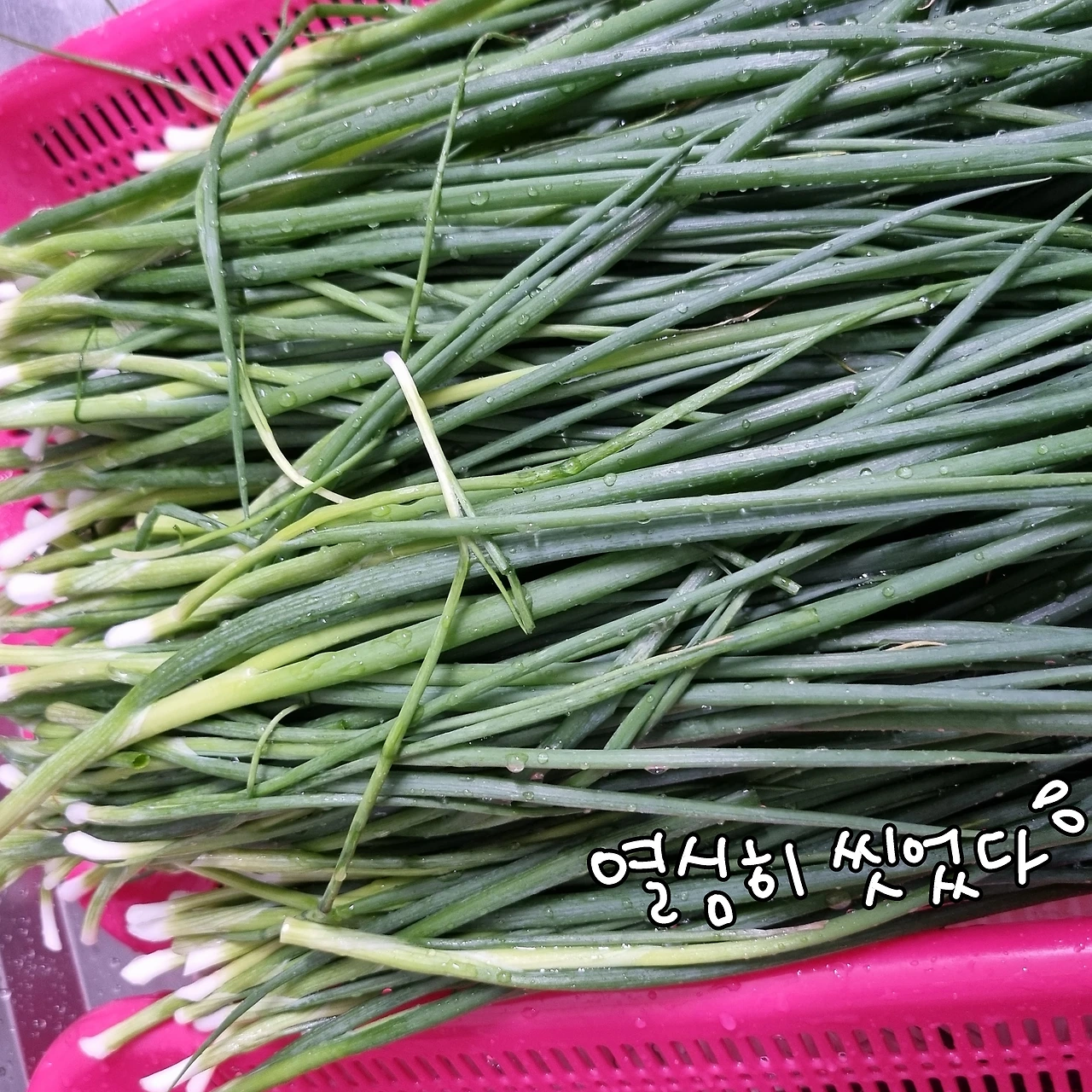 다음 날 점심 투표를 마치고 시장에 들렀다. 쪽파를 찾았으나 쪽파는 다 들어갔다며 대파보다 작지만 파김치용으로는 적당해 보이지 않는 실파를 보여줬다. '파김치 못 담그려나...' 하며 시장을 나가던 중 쪽파보다는 크지만 꽤 괜찮은 실파가 있는 가게를 발견했다. 조금 큰 쪽파일까? 했지만 역시나 실파였다. 가격은 1kg에 4000원. 인터넷에서 가격 보고 1kg에 만 원 예상했는데 웬 일? 실파 두 단을 8천 원에 사서 횡재라도 한 것처럼 기분 좋게 집으로 (헐떡이며) 돌아왔다.