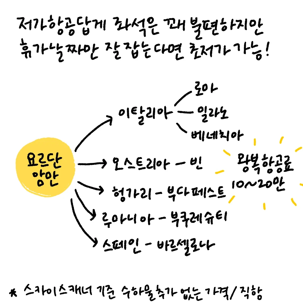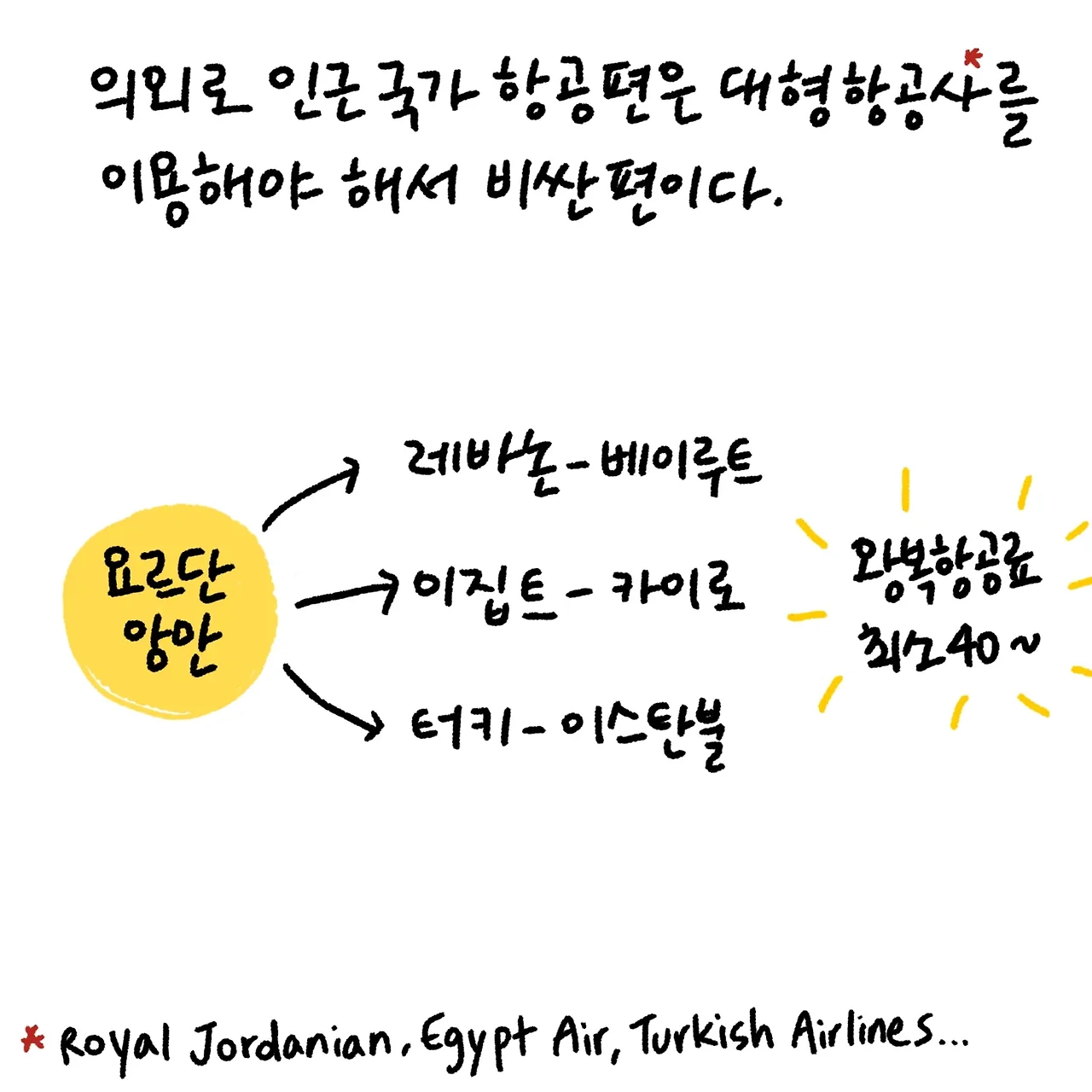 요르단에서 살면 좋은 점 두 번째! 휴가와 금전적 여유가 있다면 인근 국가 여행을 쉽게 갈 수 있다. 아쉽게도 이집트, 터키, 레바논과 같은 곳은 대형 항공사(터키항공, 요르단항공 등)를 통해서만 갈 수 있어서 의외로(?) 유럽이 제일 만만한 여행지다. 유럽과 이집트, 터키와 같은 북아프리카/중동(MENA)지역 항공료가 최소 2배 이상 차이 나기 때문에 유럽을 가는 편이다.