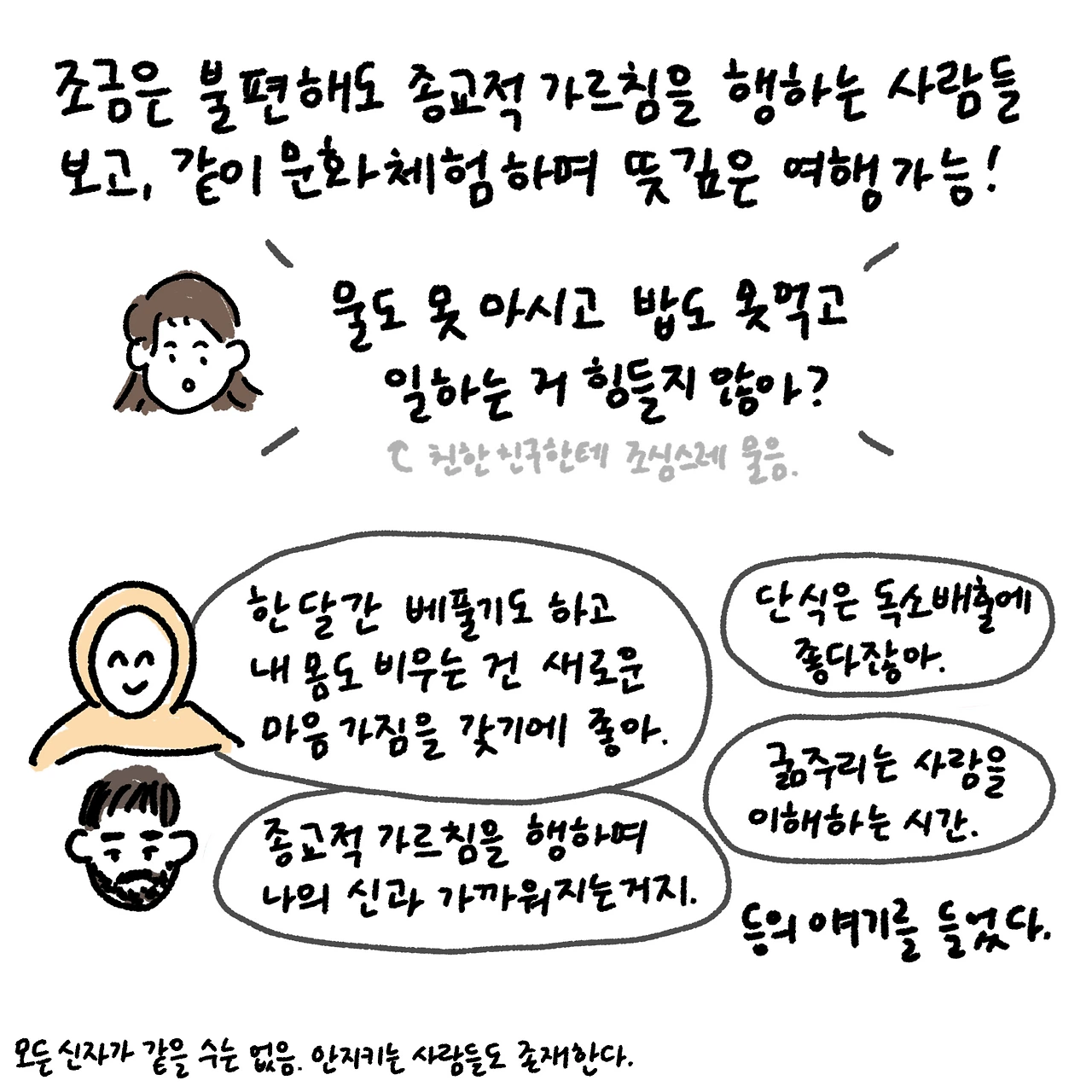 라마단 기간 여행은 여행 마지막 날에 며칠 넣고나, 끝자락에 이드와 함께 즐기는 것을 추천한다. (이드 때는 대부분의 식당이 문을 닫지만 여행지는 대부분 여는 것 같고 고급 식당 또한 다 여는 듯함. 대신 붐빌 수 있으니 예약은 필수!)