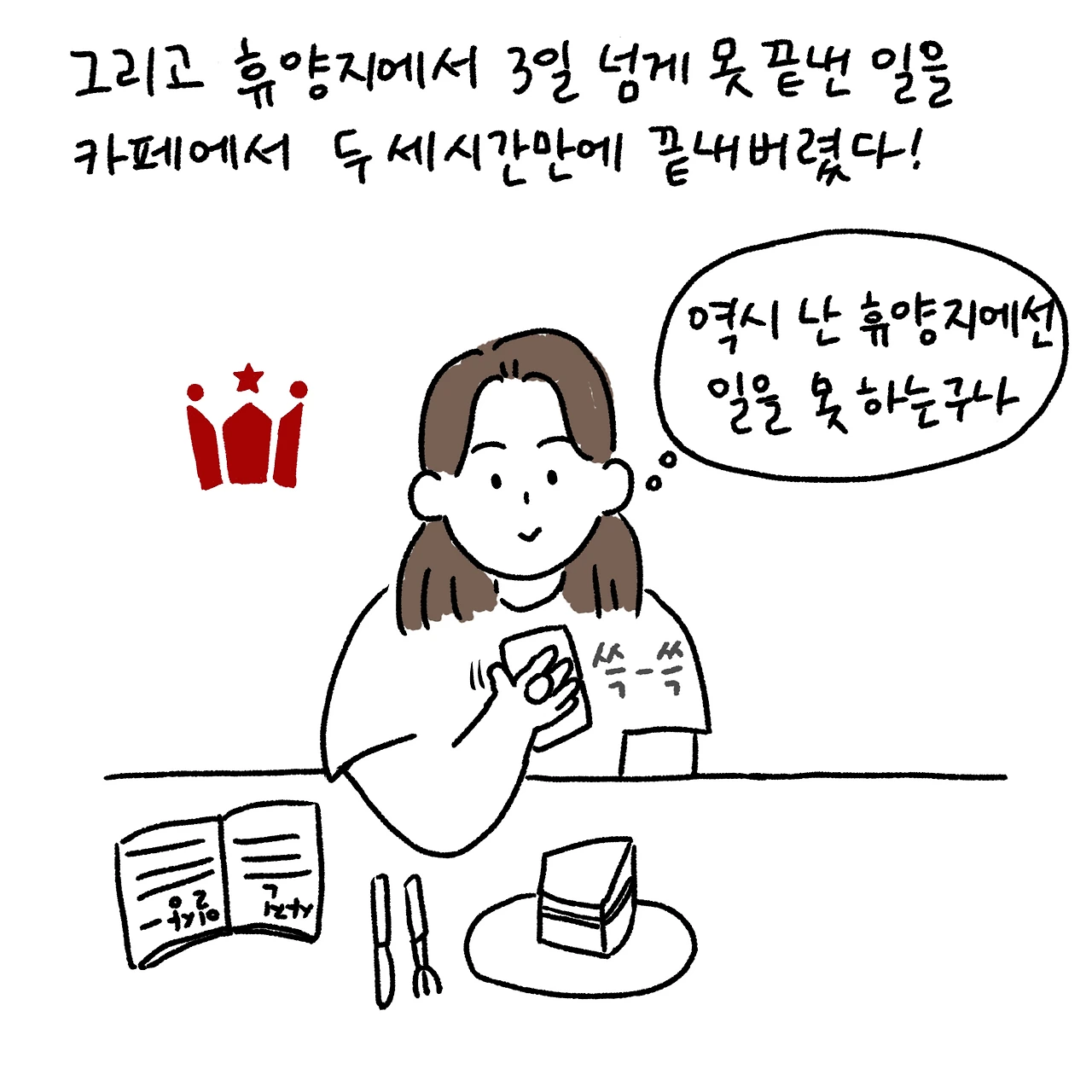 끝이 찾아왔다. 7월 17일 요르단을 떠나 한국으로 돌아왔다. 휴양지에서 하기로 했던 일들은 집 앞 프랜차이즈 카페에서 몇 시간 만에 끝마쳤다. 아 역시 나는 휴양지에서는 일 못하는 사람이다. 한국에 돌아와서 휴양지에서 디지털 노마드로 살아가는 사람들이 대단하다는 것을 다시 한번 깨달았다.