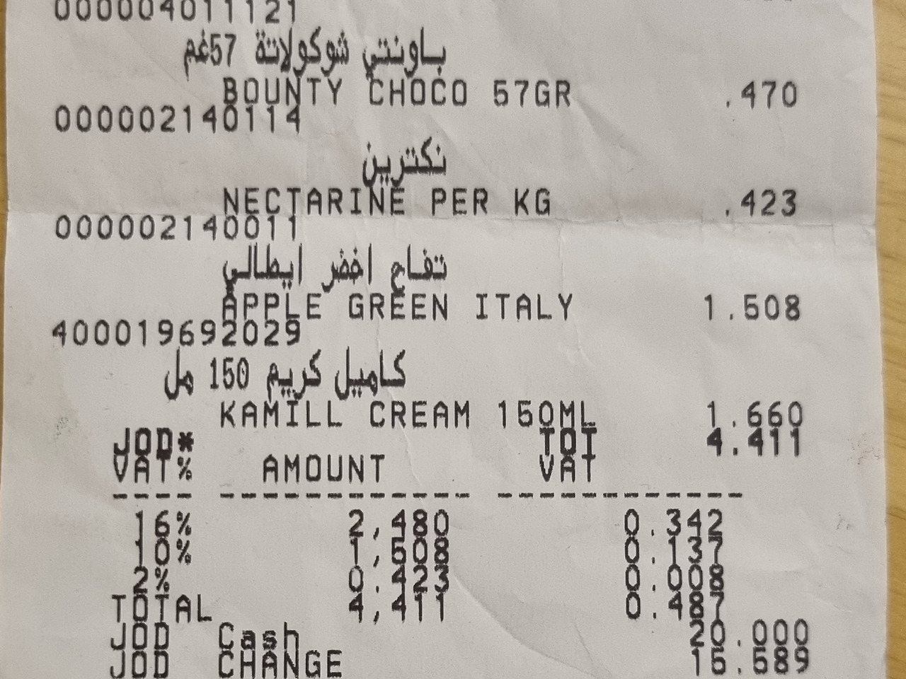 처음 요르단에서 물건을 사고 당황했던 부분이 있다. 바로 소수점 셋째 자리까지 나오는 가격. 총 지불 금액 15.589JD. 아직 동전에 익숙치 않은데 얼마를 어떻게 내야 하나 고민하는데 15.6JD를 달라고 한다. 1짜리 동전이 있기는 하지만 잘 쓰이지는 않았다. 보통 둘째 자리에서 올림 한다. 10.231JD를 내야 할 때는 10.30을 내도 되고 10.25를 내도 된다. 10.30을 내면 5를 거슬러 줄 수도 있고, 아닐 수도 있다. 10.25를 냈다면 그냥 계산 끝난 거니 물건을 챙겨 나오면 된다. 거스름돈은 사장님 마음이다.