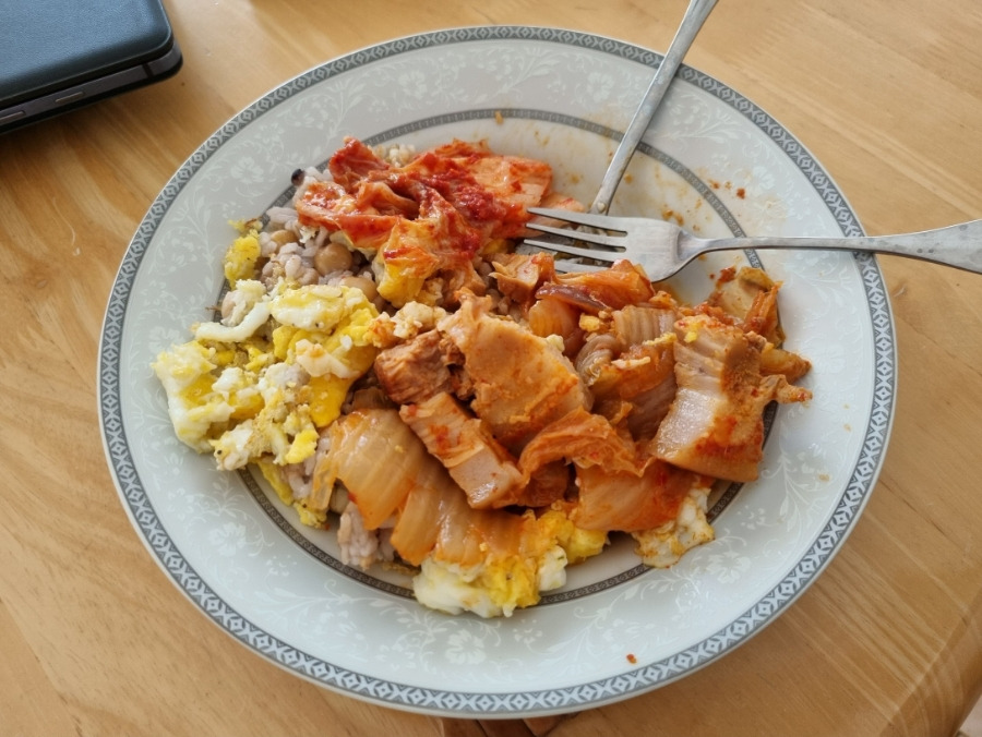 저렴한 가격도 아닌 데다가 보관도 잘 되지 않아 메마른 냉동 돼지고기. 오랜만에 돼지고기 김치찜을 끓여보았다. 아시아마켓에 한 달 뒤에나 입고된다는 귀한 비비고 김치를 한 팩 다 넣어서 끓였더니 과장 많이 보태 천상의 맛이었다. 육즙이 없어도 지방 부분은 쫄깃했고 얼마만의 김치찌개인지. 며칠 동안은 점심시간에 샤와르마나 햄버거를 시키는 대신 집에 가서 돼지고기 김치찜에 밥을 먹었다.