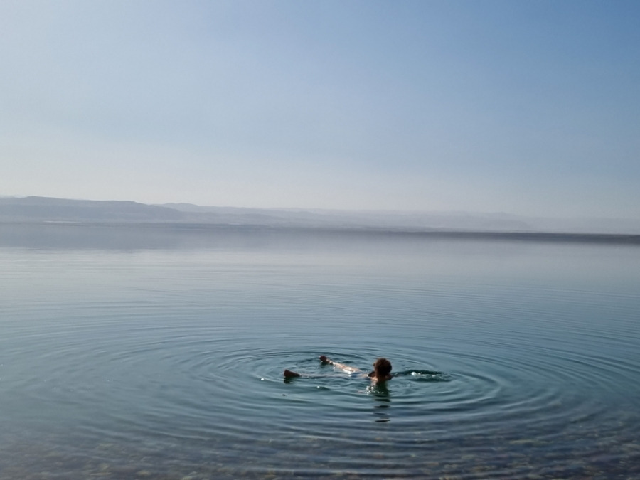 고백하자면 사해에 처음 간 이날은 팔을 뻗고 떠있지 못했다. 수속성 인간이 아닌 데다가 와디무집에서 물에 쓸려 나가 다리에 큰 멍도 생겼고, 안경까지 잃어버려 물이 무서워졌다. 게다가 그냥 물도 아니고 염도가 높아 더 큰 두려움을 줄 수 있는 소금물! 토딘과 토동은 다시 수영복으로 갈아입고 사해에 둥둥 떠서 온갖 묘기를 펼쳤다. 수속성 인간의 움직임에 박수를 치며 사진을 찍어줬다. 나는 아주 얕은 곳에 가서 손으로 땅을 짚은 채 사해에 몸을 담갔다.