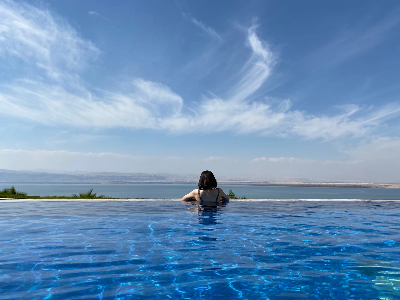 사해에서 둥둥 떠보기 꿈을 달성하고 온수로 붉어진 상처와 미끌거리는 몸을 헹군 뒤 리조트 내 수영장으로 돌아왔다. 사해를 무료로 들어갈 수 있는 곳이 많았지만 리조트를 택한 게 탁월한 선택이었다. 호텔 숙박을 하거나 입장료를 지불해야 하지만 식당, 카페는 물론이고 샤워시설까지 잘 갖춰져 있어서 편리했다. 수속성 인간 토딘과 토동은 아카바에 이어 사해에서도 수영 삼매경. 나는 발이 닿지 않는 수영장 가장자리에 팔만 걸친 채 사해 건너편 이스라엘 땅을 바라보았다. 국경을 바라보거나, 마주하는 것이 어색한 분단국가에 살고 있어서인지 국경이 맞닿아 있거나 이동할 수 있는 나라를 보면 신기하다.