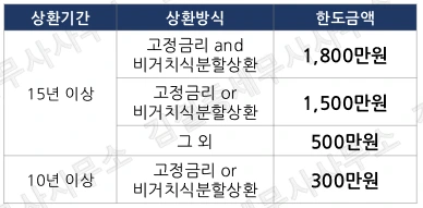 상환기간 및 상환방식에 따라 아래와 같이 달라진다.