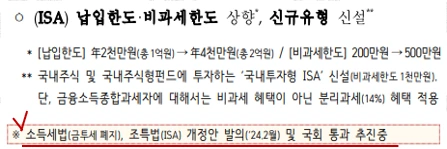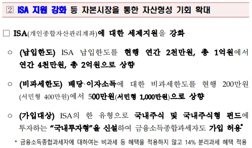 ISA 역시 납입한도 및 비과세한도가 상향되면
