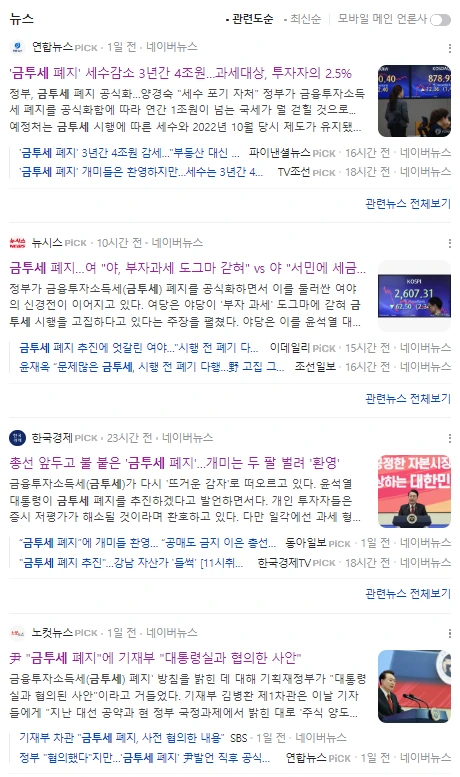 금투세 폐지에 대한 정부 의지를 보여준 바 있다.