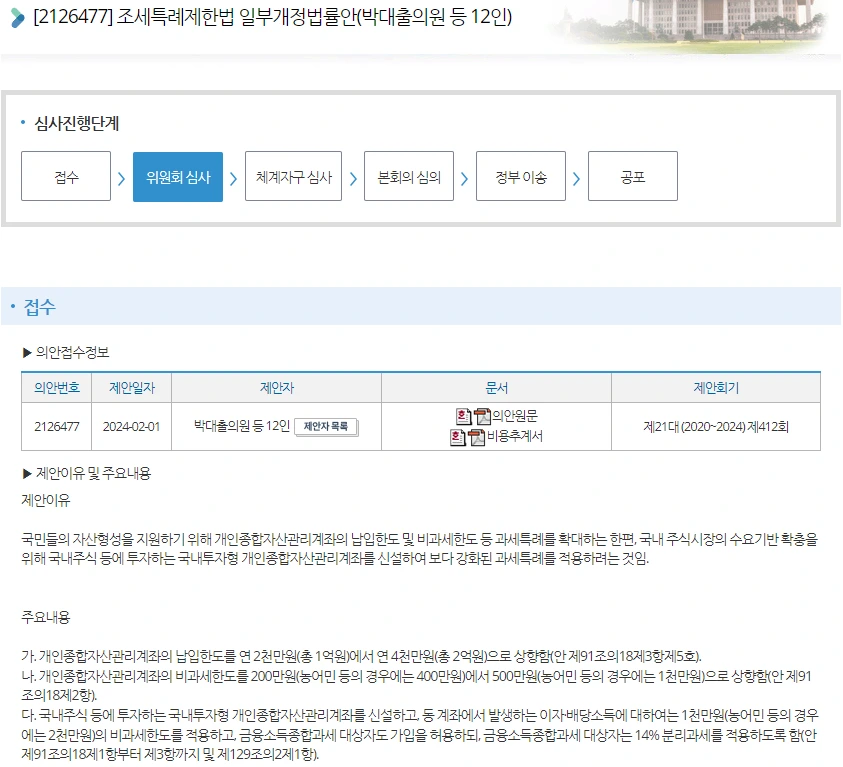 ISA 세제혜택 확대 내용을 담은 조특법 개정안이