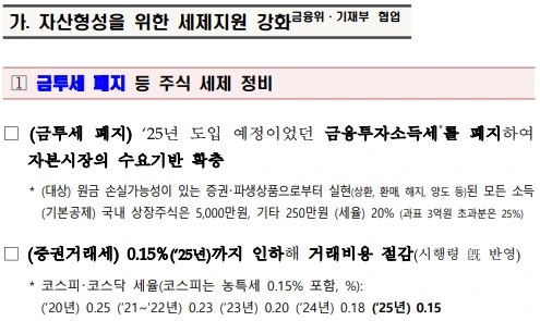 금투세 폐지, 거래세 인하, ISA 혜택 확대를 통해