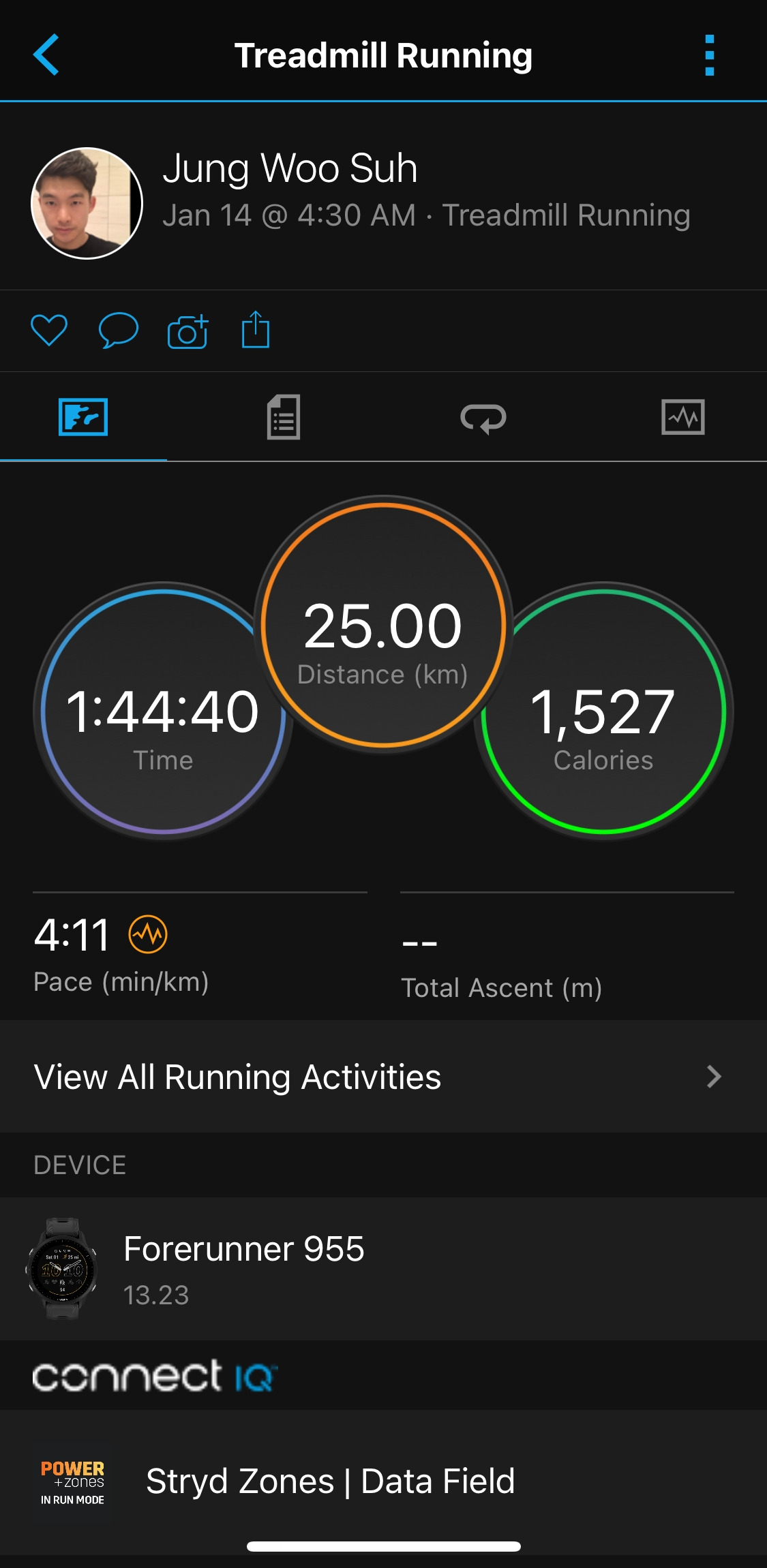 오늘은 이번 겨울 첫 LSD 25,000m를 실시하는 날이었고, 부슬비가 계속되는 날씨로 실내 트레드밀에서 진행하였다