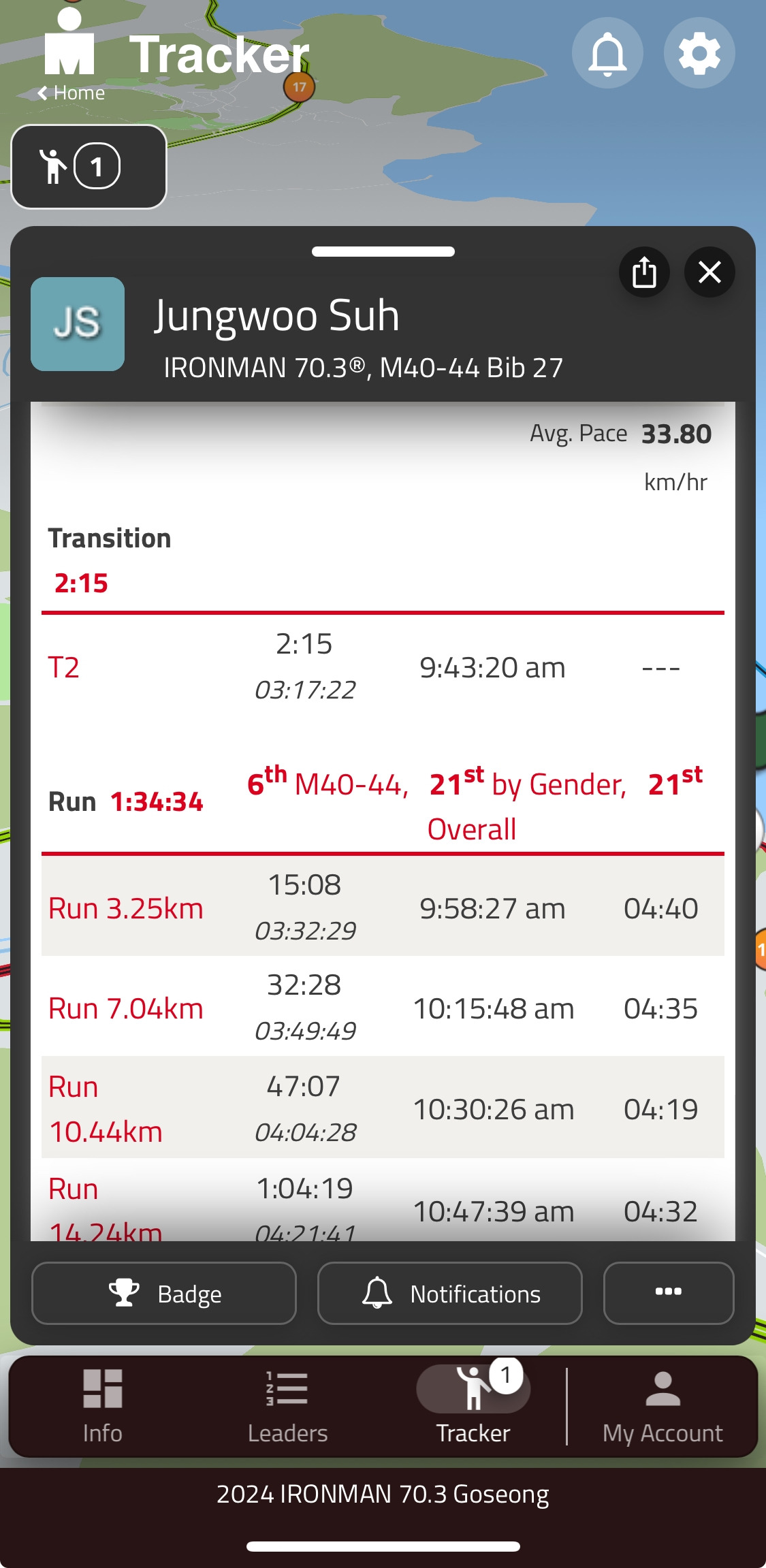 아이언맨 70.3 고성 후기 03 - 런 21.1km