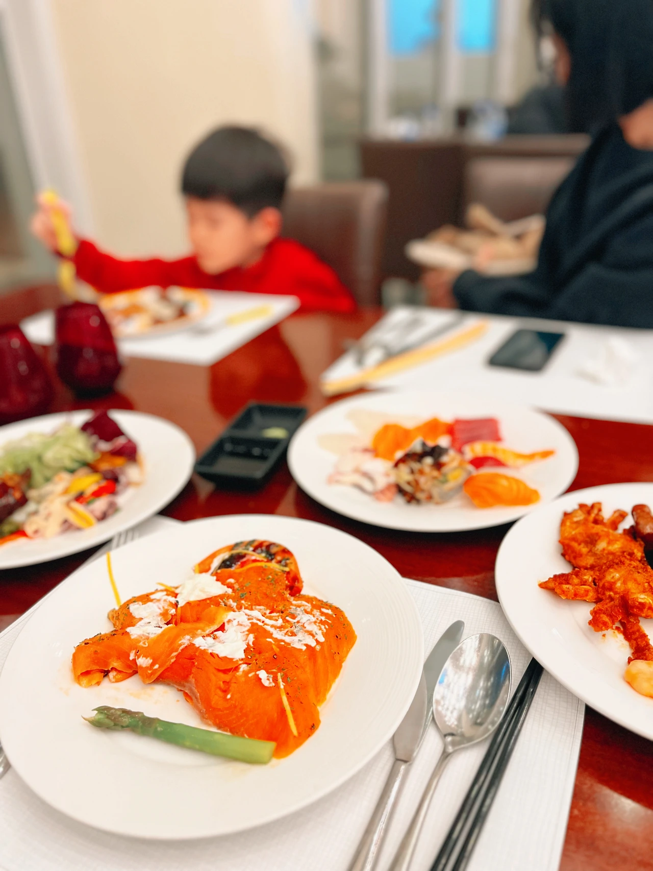 여행지에서는 최대한 양질의 식단을 위해 연어, 고등어, 육류 위주로 섭취하였지만, 저녁과 아침까지 이어진 뷔페식으로 인해 체중관리에 실패하고 말았다