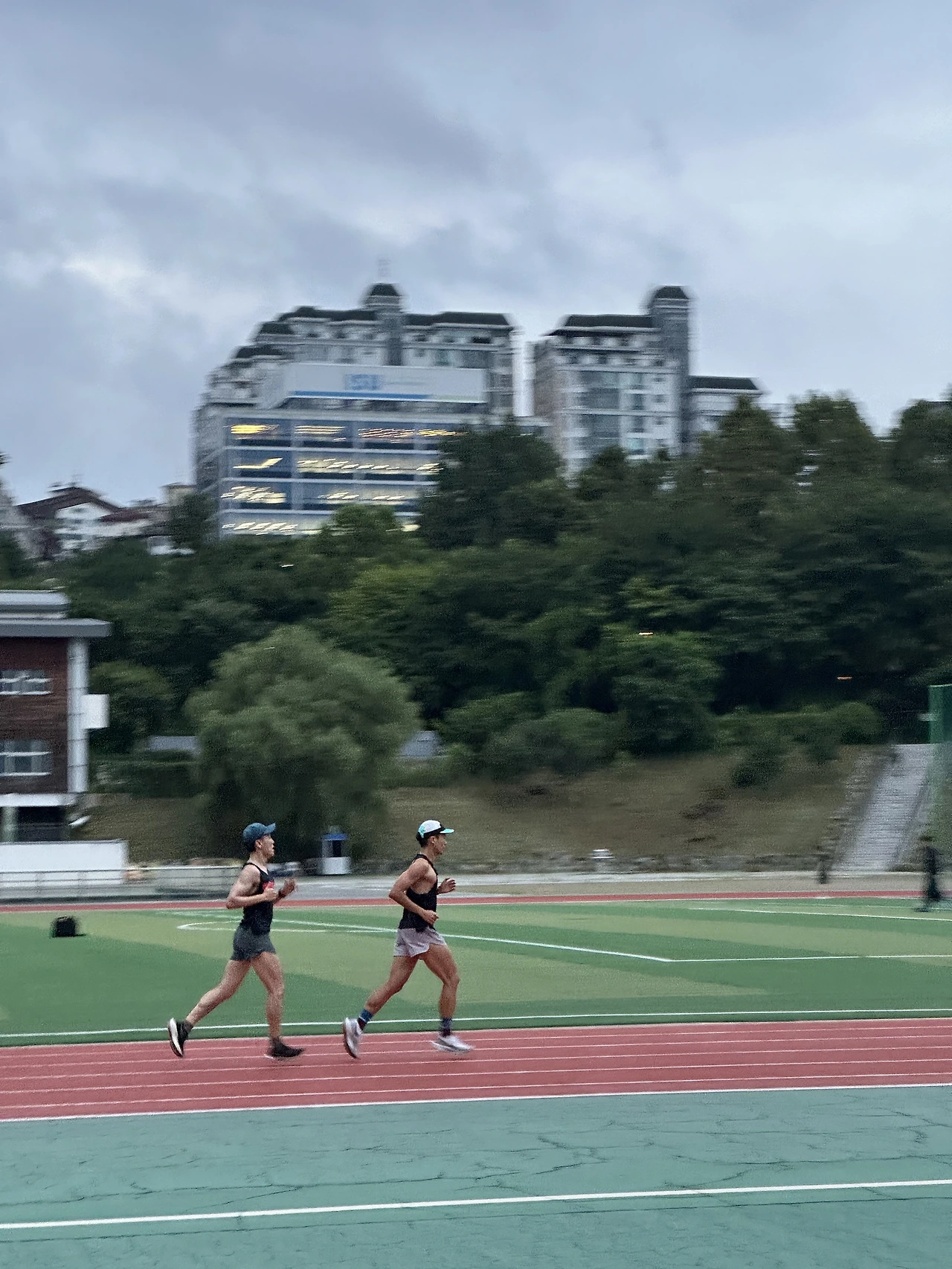 바람은 불었지만 생각보다 너무 덥고 습한 날씨, 만만해 보였지만 생각보다 쉽지 않았던 새벽 러닝이었습니다. 포인트 운동 수요일인 오늘은 3000미터(3분 55초/km) 2회, 200미터 37초 5회, 이렇게 달렸습니다. 프로그램만 봤을 때는 만만해 보였습니다. 3분 55초/km 페이스는 400미터 트랙에서 1바퀴당 94초인데요. 원래 84초이지만 혹시 오타가 아닌가 생각할 정도였으니까요. 막상 뛰어보니 쉽지 않았습니다. 포기할 정도까지 힘든 것은 아니었지만 그렇다고 마냥 수월하고 가뿐하게 할 수도 없었습니다. 새벽 4시 50분임에도 땀이 비 오듯 쏟아질 정도로 무더운 날씨 때문일지 모르겠습니다. 운동을 마치고 집에서 체중을 측정해 보니 2kg이 빠졌습니다. 포인트 수요일치고는 강도가 약해 보여 의도적으로 운동 부하를 더해주기 위해 어제 프로그램을 저녁에 진행했는데, 그 때문에 몸이 덜 회복되어서 그런 것일지도 모르겠네요.