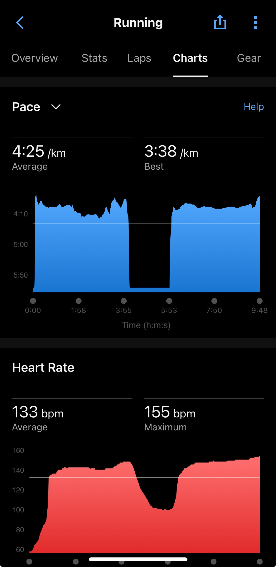 LSD는 대회 목표 페이스보다 대략 1km당 30초 ~ 20초 느린 페이스로 설정하여 달립니다. 이번 가을 마라톤 목표 페이스는 3분 55초/km입니다. LSD 출발부터 8,000m 지점까지는 30초 느린 4분 25초/km로 달리고, 이후부터 마칠 때까지는 목표 페이스보다 20초 느린 4분 15초/km 속도로 달렸습니다. 지난겨울에는 40,000m LSD를 혼자서도 4분 10초/km 페이스로 크게 힘들지 않았는데, 이번에는 그보다 더 짧은 거리를 더 느린 페이스로 다른 분들과 함께 달리는 것임에도 무척 힘들었습니다. 역시 우리나라 고온다습한 여름은 마라톤을 하기에 만만하지 않은 조건입니다. 중간 몇 번이나 그만두겠다는 포기 욕구를 참아가며 겨우 무사히 마칠 수 있었습니다.