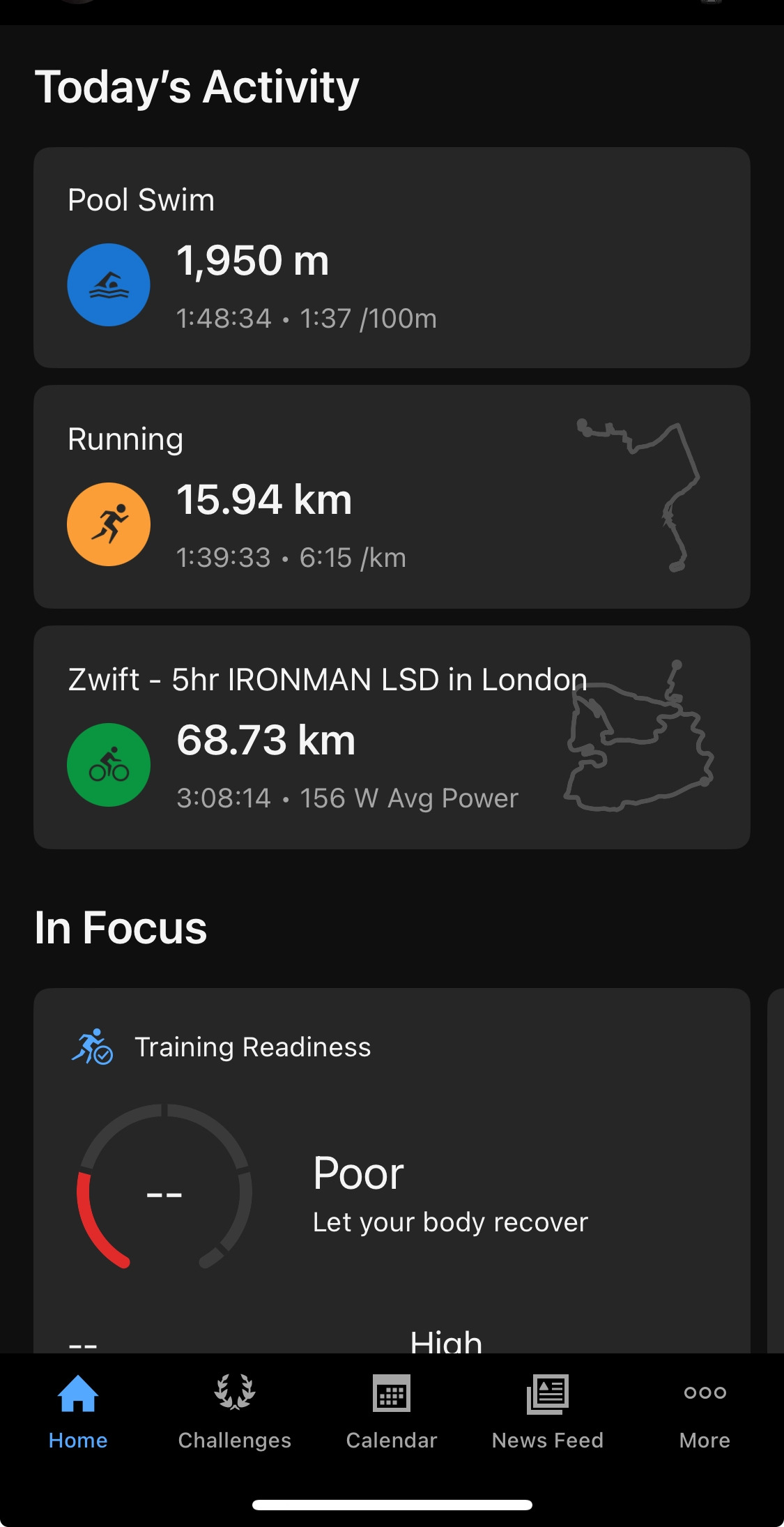토요일 3시간 즈위프트 사이클 + 100분 조깅 + 수영 2시간