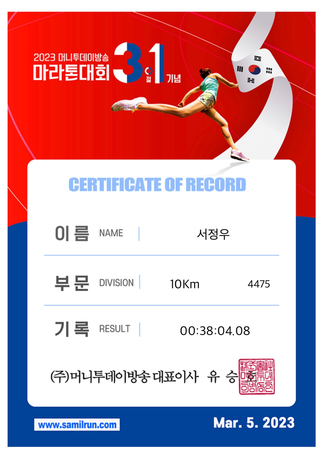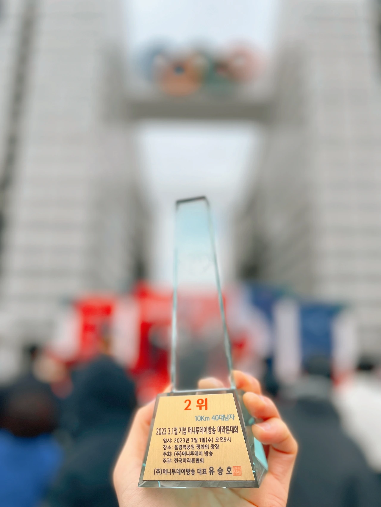 오늘은 그때의 그 길을 달렸다. 태어나는 아이를 위해 그 어느 때보다 우리 부부가 애틋했던 곳. 그리고 아내와 아이의 응원을 받으며 대회를 마쳤다. 연대별 시상을 남발하는 것 같기도 하여 입상하기에는 다소 민망한 기록이지만, 오늘만큼은 추억에 젖으며 행복하게 달렸다