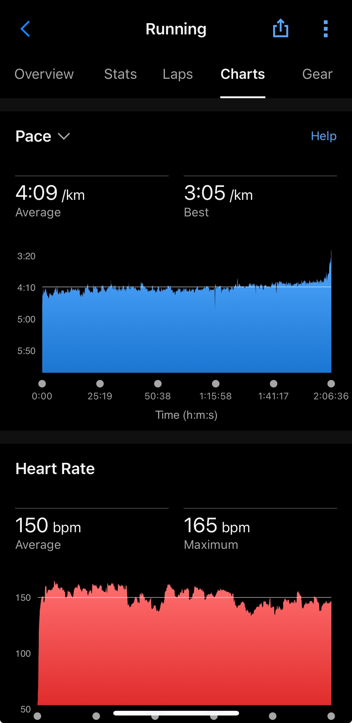 오늘도 하체(엉덩이, 넓적다리근육 등)가 눌리는 느낌이 최소화되도록 무게중심을 위로 올리기 위해 등, 허리 기립근을 곧게 펼치고 세워 달렸습니다. 페이스도 크게 부담 없었기 때문에 무사히 마쳤어요. 내일은 짧고 빠른 반복 달리기로 주말 훈련을 이어가려 합니다.