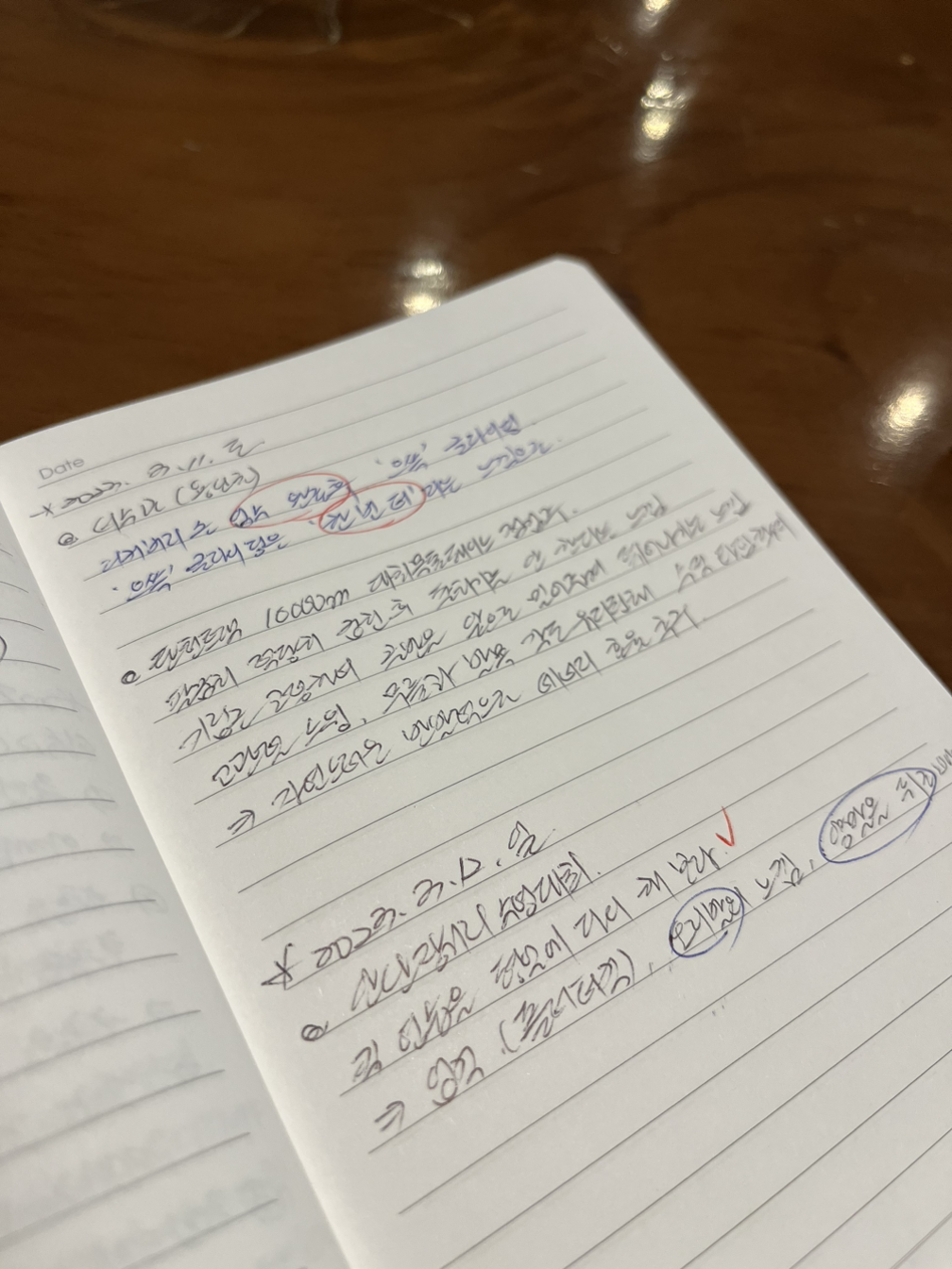 보통 폰 메모장 앱에 기록을 하는데, 저녁쯤 다시 한번 내용을 축약하여 다이어리에 옮겨 적는다. 이건 특별한 이유가 있어서는 아니고, 그냥 정신병이다. 여전히 종이에 적는 걸 좋아한다