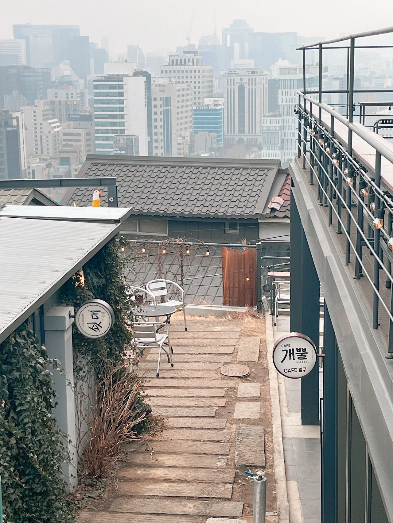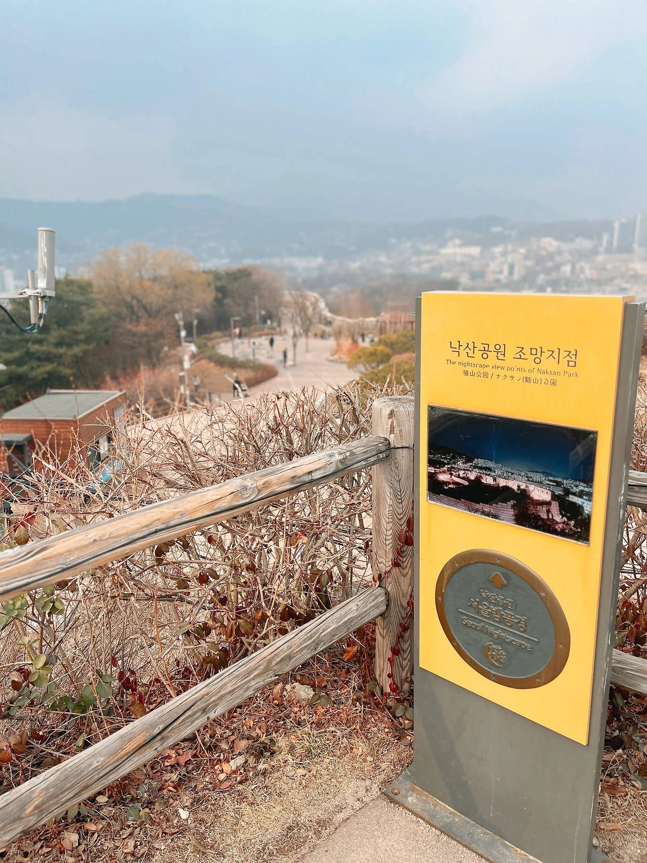 정상 전망대에 올라 시가지를 구경하려 했는데 미세먼지 많은 날이라 아쉬웠어요. 순성 길 산책을 시작했습니다.