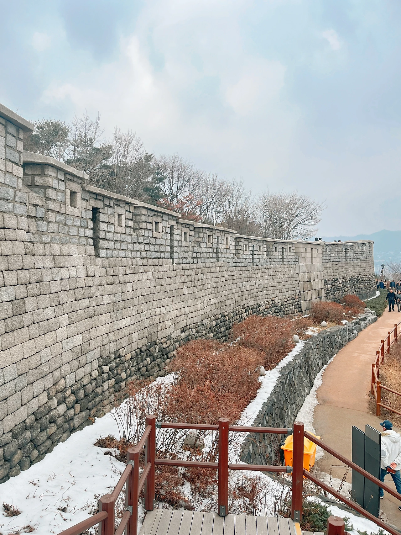 한양도성은 도읍을 한양으로 정한 후 무학대사 청으로 새 왕조의 품위와 격을 위해 성곽을 둘러싸도록 지어졌습니다. 양반 댁 한옥이나 서원에 가면 적당한 높이로 내부가 보일 듯 말 듯 담장이 두르고 있는 것처럼요.