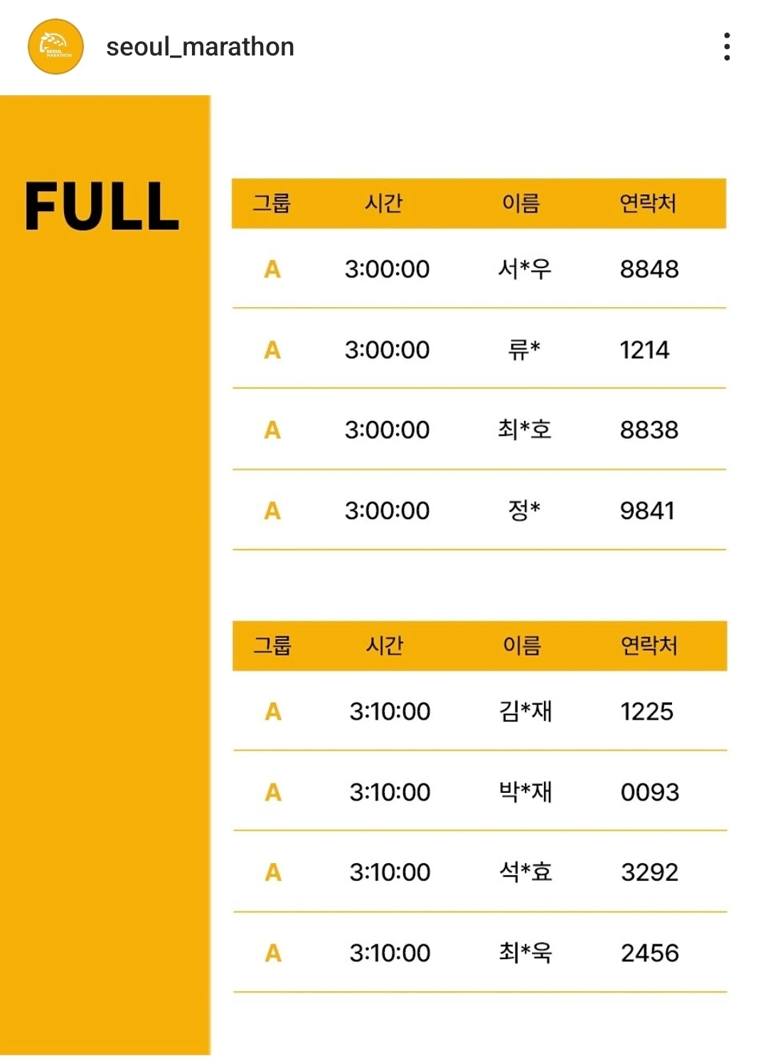 서울마라톤 풀코스 공식 페이스메이커로 선정되었습니다. A 그룹 SUB3(3:00:00) 담당입니다. 국내에서 가장 오래되고 규모가 큰 대회에서 서브 3 페이스메이커를 맡게 되어 큰 영광입니다. 그 어떤 대회보다 설렙니다.