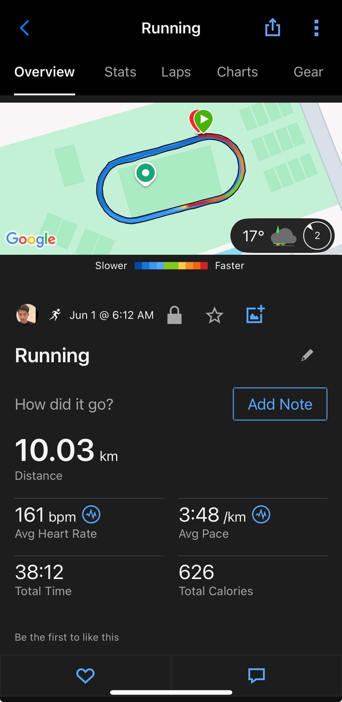 일요일에는 반포 트랙에서 한 번 더 10000m를 달렸습니다. 400m 92초(1km 3분 50초) 페이스로 달리기로 했고, 마지막 2000m(다섯 바퀴)는 조금 빠르게 속력을 올리기로 했습니다. 저는 전날 대회 여파인지 마지막에 페이스를 많이 올릴 수는 없었고, 적당히 점점 빠르게 달리며 마쳤습니다.