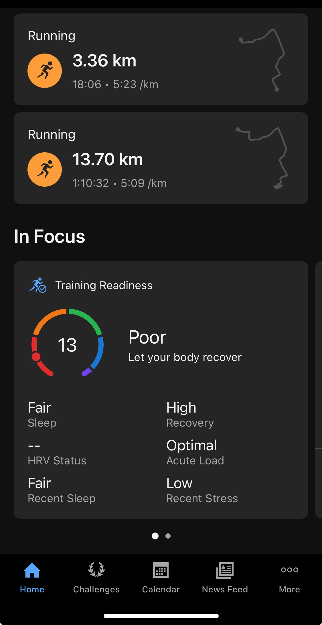 오늘 강도는 적절. 피로 누적 없이 경기 감각을 살리는 용도의 일정.