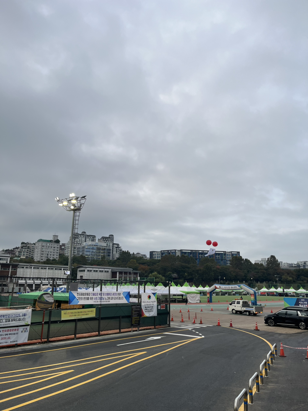 매일 새벽 이용하는 반포 종합운동장 트랙은 이번 주말 서초구민 체육대회 행사 준비로 트랙 중간에 의자와 책상이 놓여있어 제대로 달릴 수 없었다. 파틀렉 러닝을 하는 것처럼 100미터는 트랙을 달리고 행사 물품이 놓인 구간을 피해서 100미터는 트랙 외곽(인라인 및 자전거 구간)을 번갈아 달렸다.