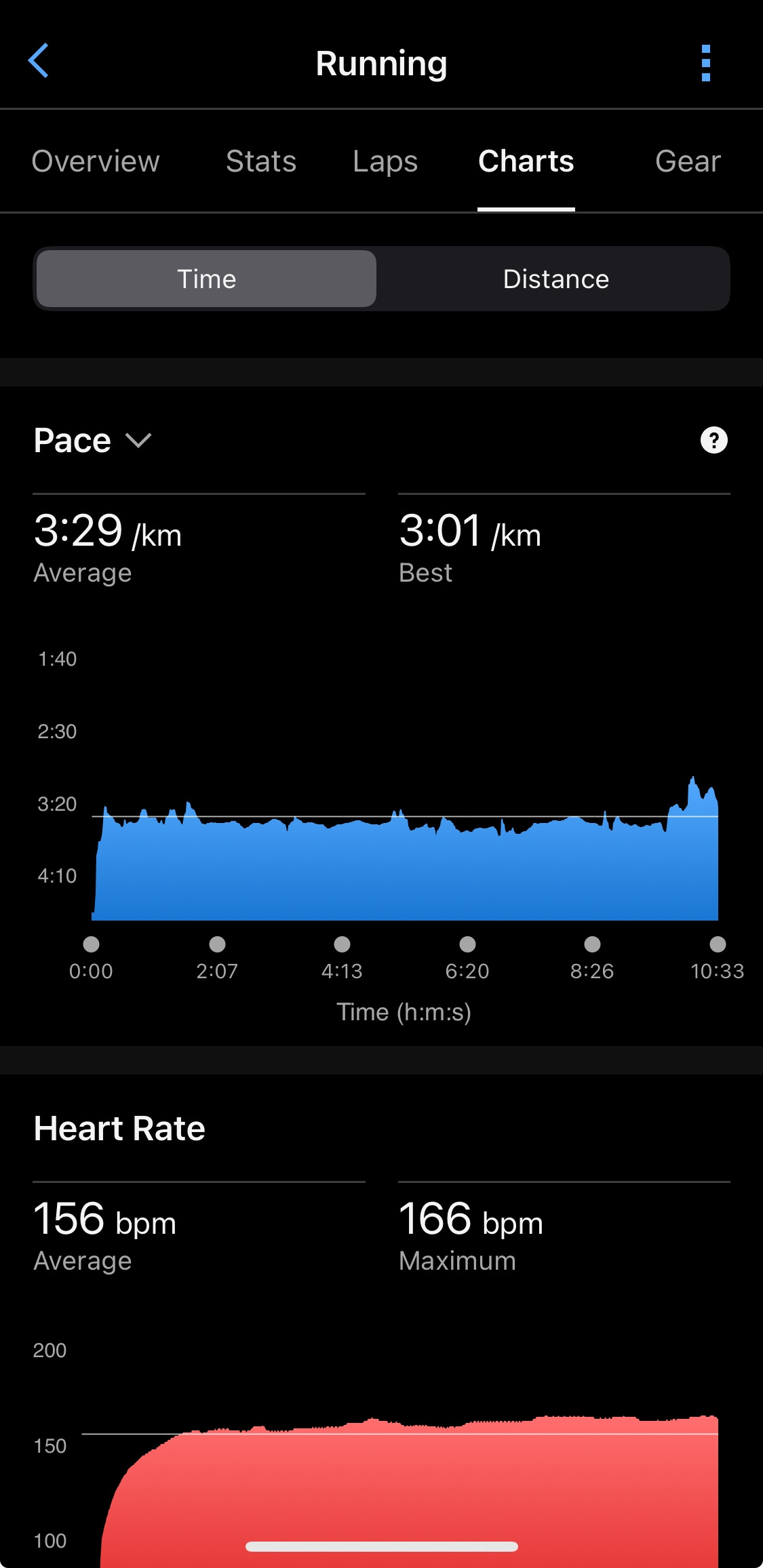 3000m 10’33”(3’31/km), 1000m 3’25”