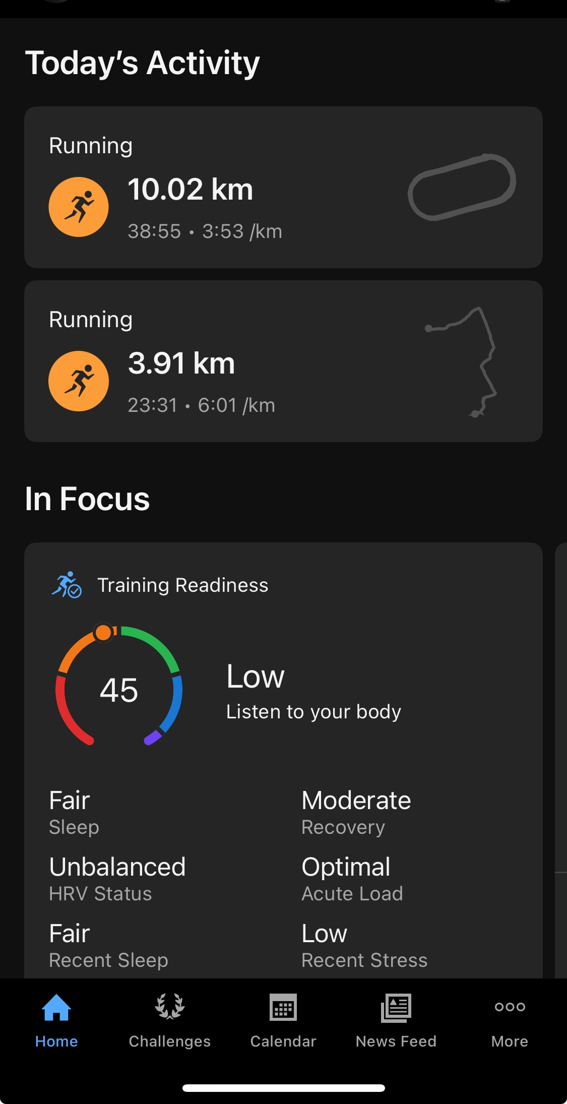 이 시점의 60분 조깅은 적절하나 훈련 강도를 페이스 5’00~5’30/km 이하로 낮춰 회복용으로 유지해야 했다. 회복이 부족한 몸 상태 느낌이다. 에라 모르겠다.