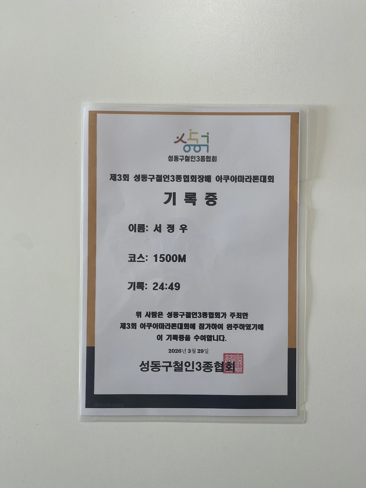 대회명: 성동구철인3종협회장배 아쿠아마라톤