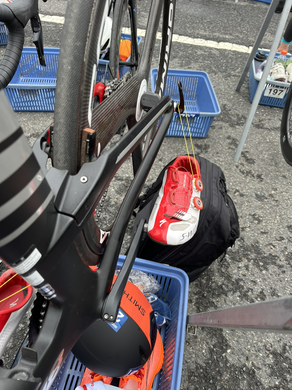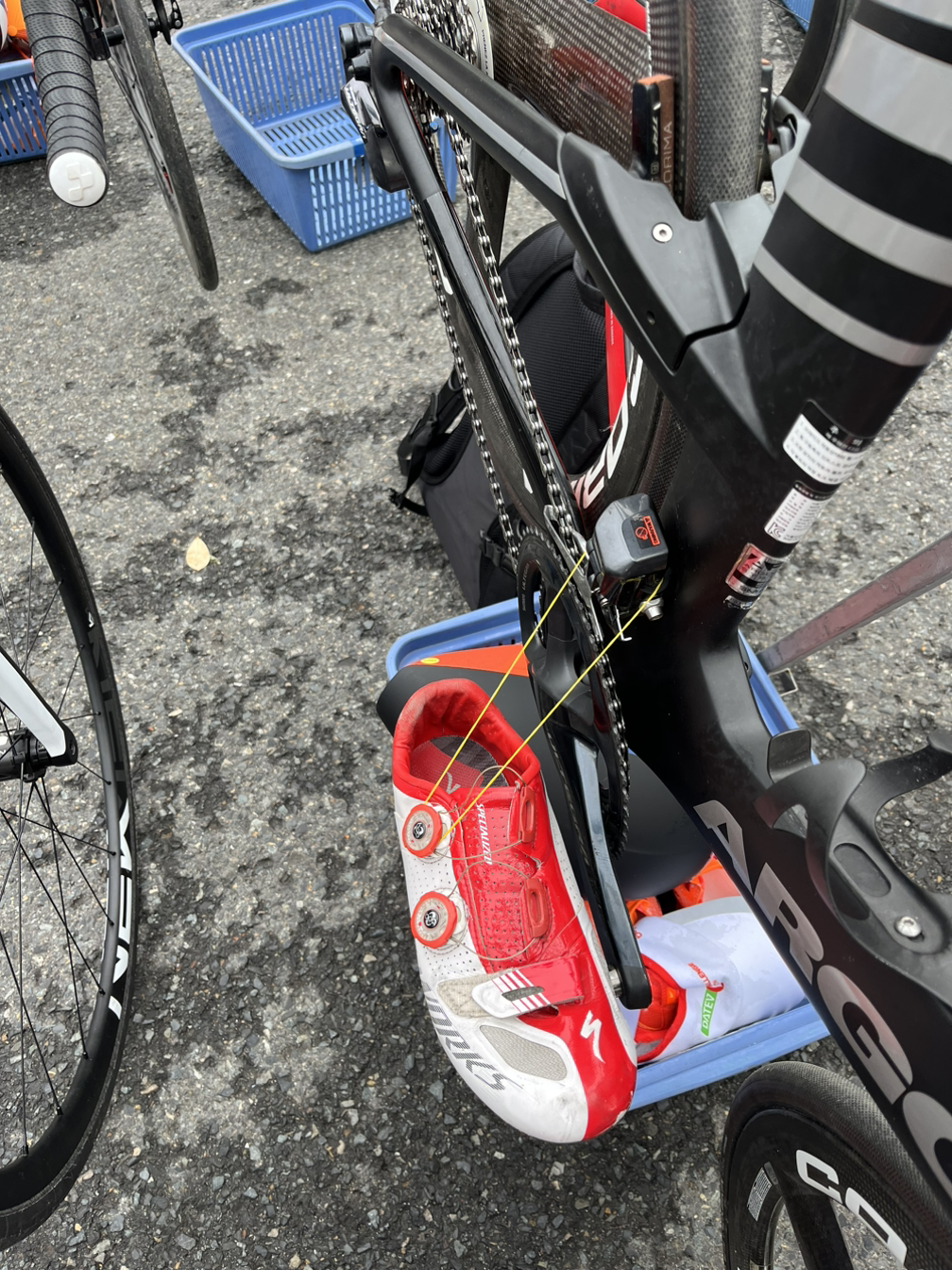 늦었지만 어쩔 수 없다. 서둘러 헬멧을 머리에 그리고 레이스벨트를 허리에 착용하고 자전거를 거치대에서 빼내며 가민 에지 520의 전원을 켠다. 미리 고무줄로 고정한 사이클 슈즈에 올라타 페달링을 시작한다. 스무 번 정도 페달링을 하고 속도가 붙으면 한쪽 발을 신발 착용하고 다시 페달링. 나머지 한쪽 발도 신발 착용. 사이클 시작