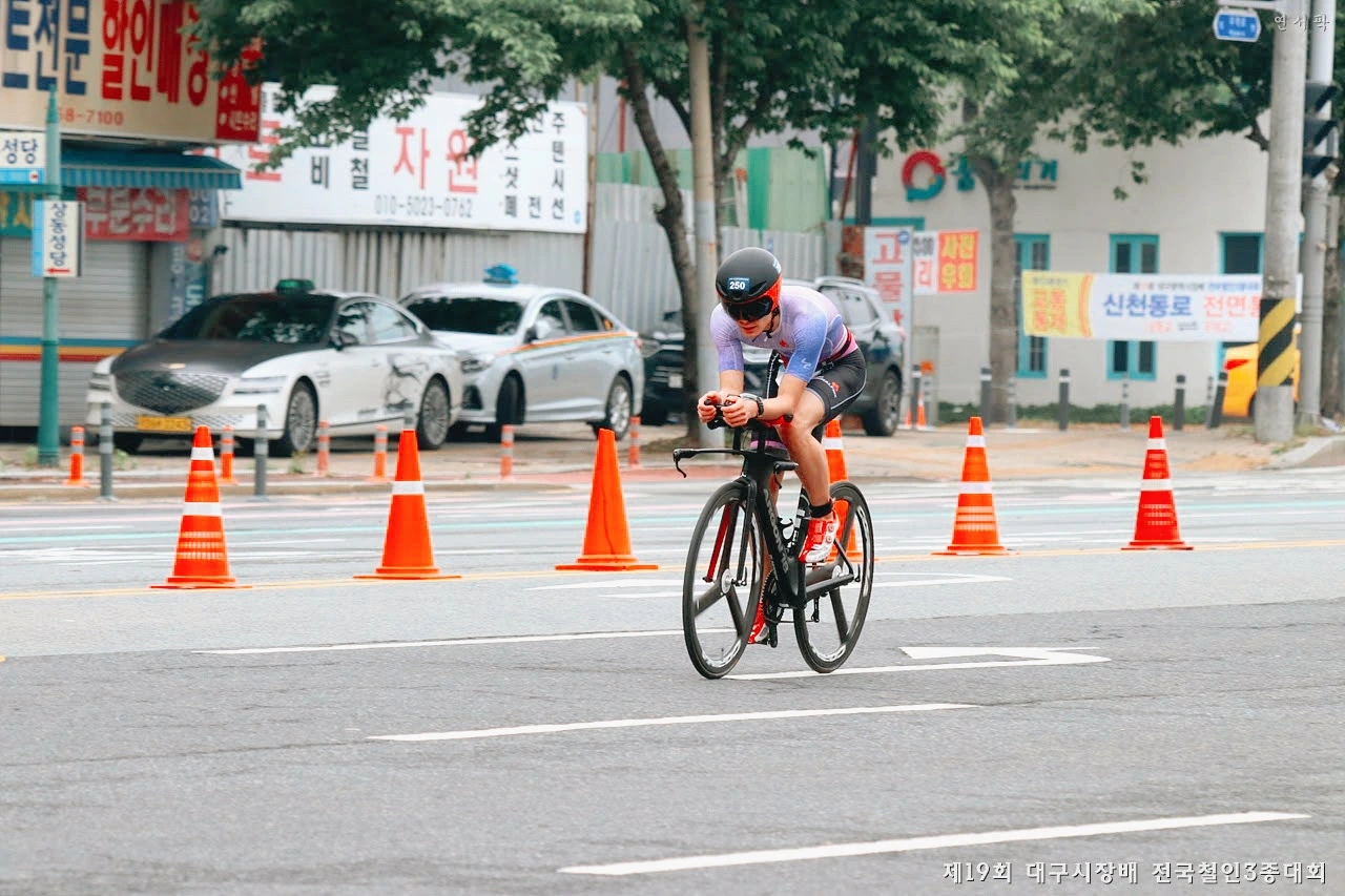 대구트라이애슬론 대회 사이클 코스는 주요 간선도로 중 하나인 신천동로를 전면 통제하여 진행된다. 20km 코스 2회전이다. 갈 때는 오르막내리막에 순풍이었고 돌아올 때는 평지에 역풍이었다. 드래프팅 없이 홀로 바람을 맞으며 주행하는 3종 대회에 나가보면 평지 코스가 더 힘들다. 쉬는 구간이 없기 때문이다. 부족한 훈련과 몸상태를 고려해 20분 FTP 280w의 70~75% 수준인 200~210w 정도로 진행하였다. 원래는 주요 구간마다 랩 버튼을 눌러 랩파워를 체크하는 것이 좋지만 그러지는 않았다.