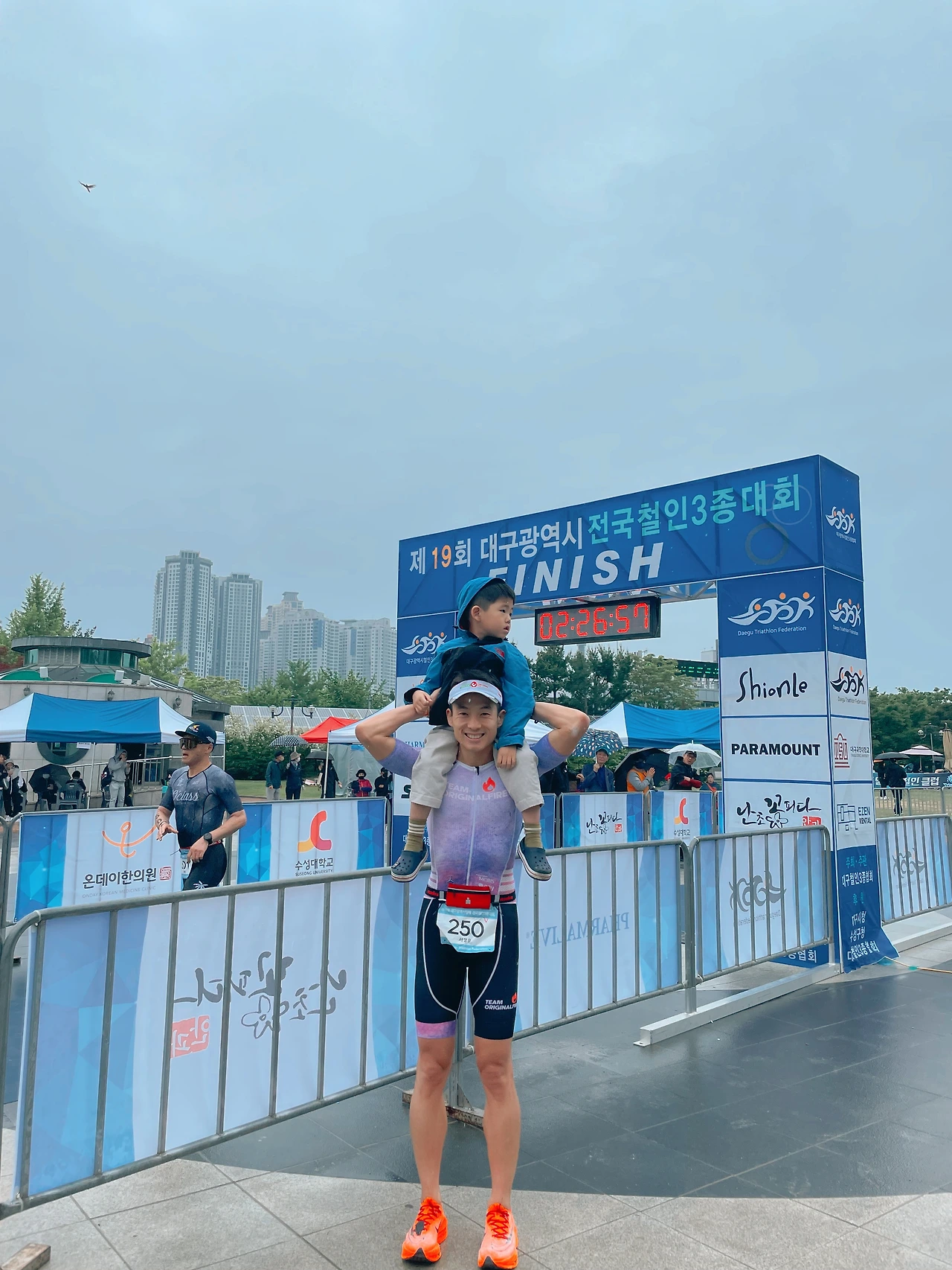 마지막 바퀴 골인 지점에 다가오고 있는데 아내와 아이의 목소리가 들린다. 뒤늦게 응원을 하러 왔던 것이다