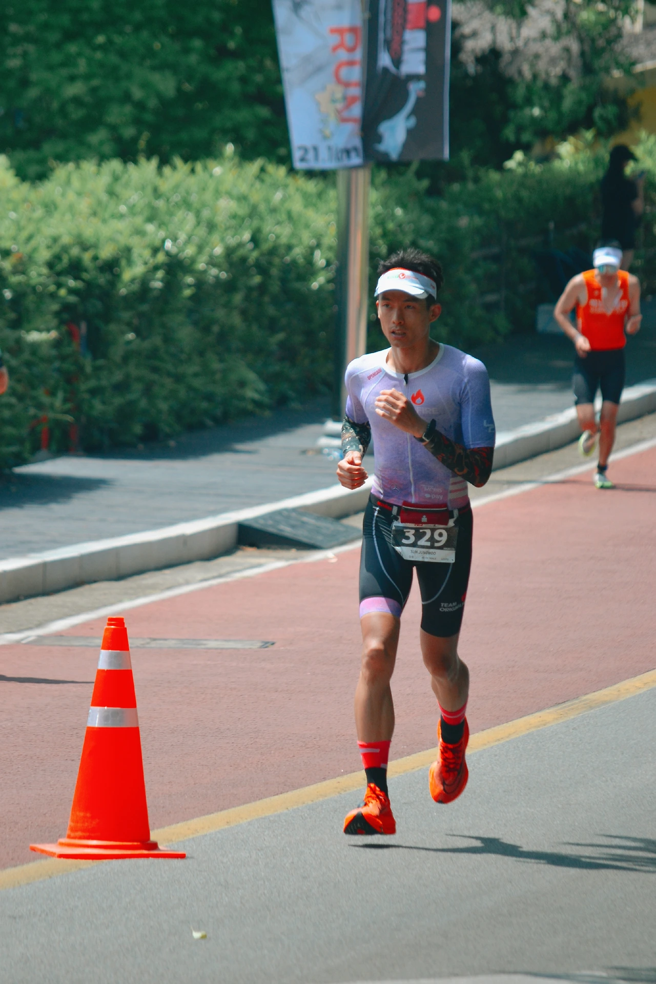 사이클을 마치고 런 코스에 들어섰을 때에는 전체 15위 정도였다. 반환점을 돌며 경쟁 선수들의 배번과 나의 순위를 확인하는데, 나와 같은 에이지 그룹 선수들 중 나보다 앞선 분들 상당수가 외국인이었다. 외국 선수들이 조기교육(?) 덕분에 수영도 잘하고 사이클도 잘 타지만 달리기에 약한 경우가 많다. 특히 우리나라처럼 고온다습 몬순형 기후 지역 날씨에서의 달리기는 몸집 큰 외국인들에게 지옥과도 같은 것이다