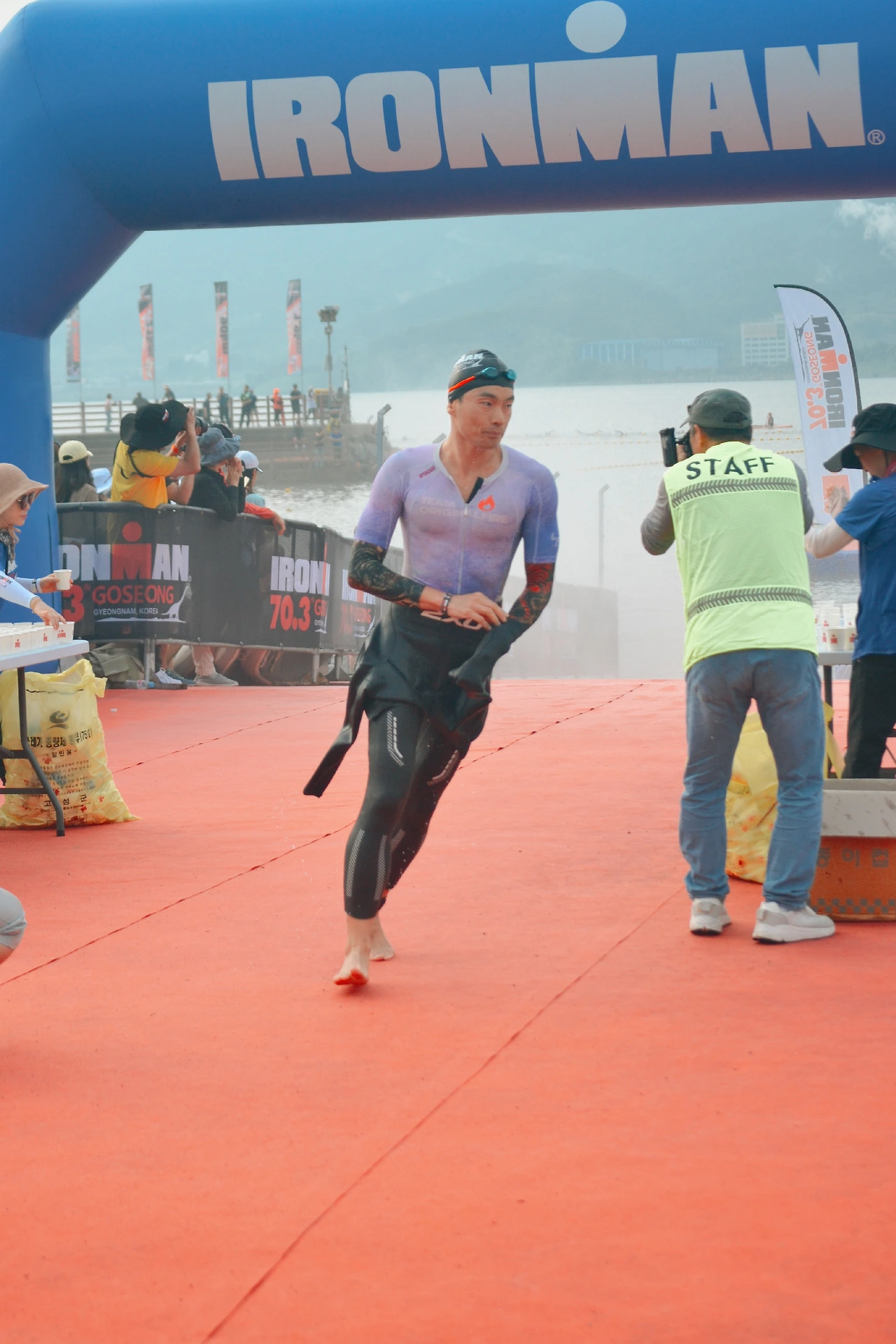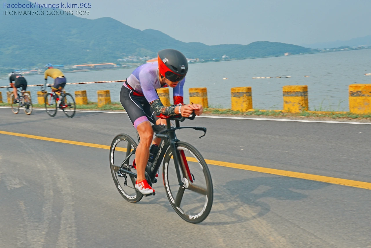경남 고성에서 열린 아이언맨 70.3 대회는 하프(Half) 코스 대회이다. 풀코스 또는 킹코스라 불리는 IRONMAN 대회는 수영 3.8km, 사이클 182.2km, 런 42.2km로 이루어져 있고, 하프코스는 수영 1.9km, 사이클 91.1km, 런 21.1km. 풀코스 180.6마일의 절반인 70.3마일이기 때문에 IRONMAN70.3 대회이다. 미국에서 시작된 종목이다 보니 미터법이 아닌 마일로 표시되었다