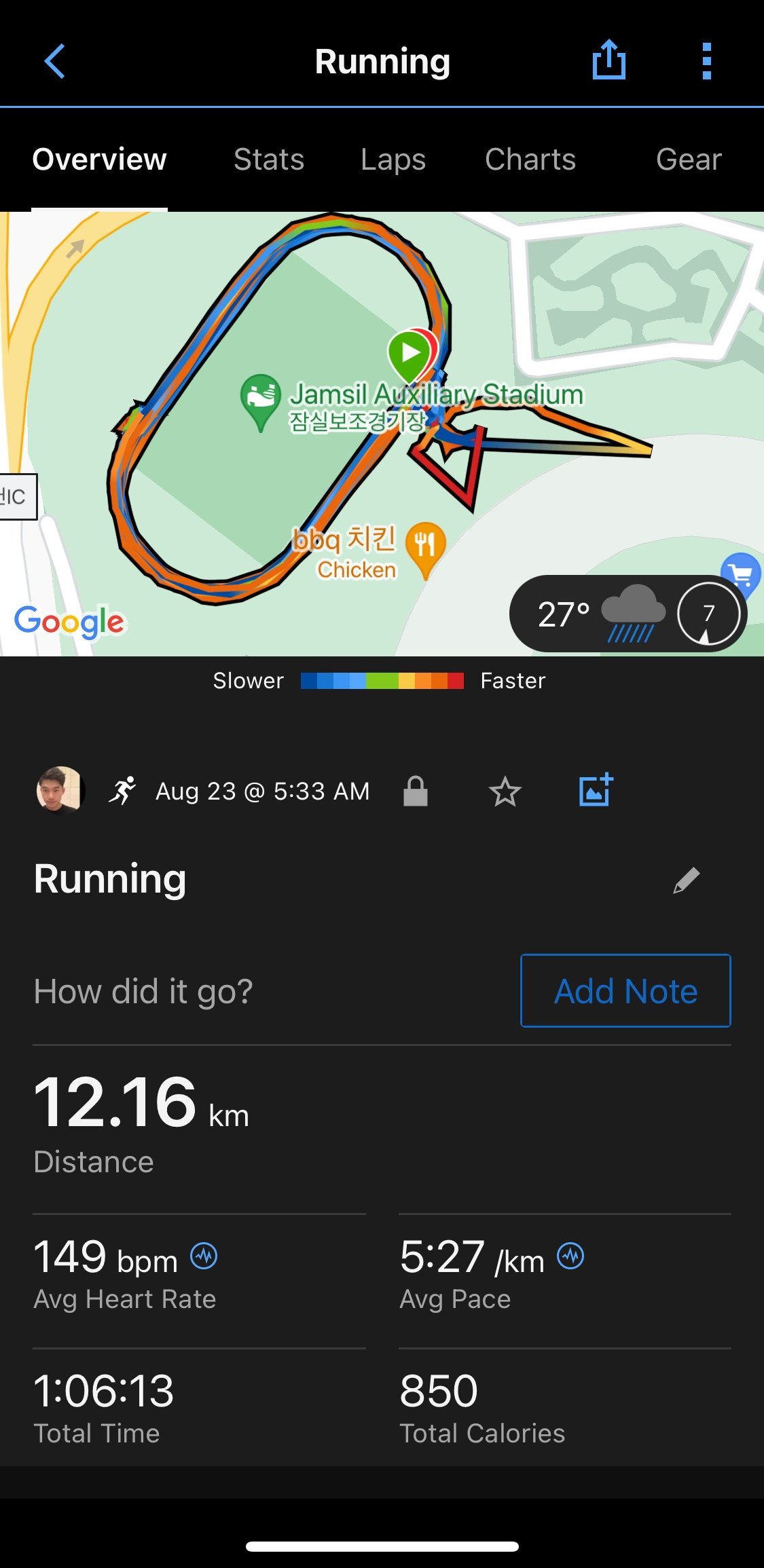 일요일 300m 60초 + 100m 43초 => x7(2세트)