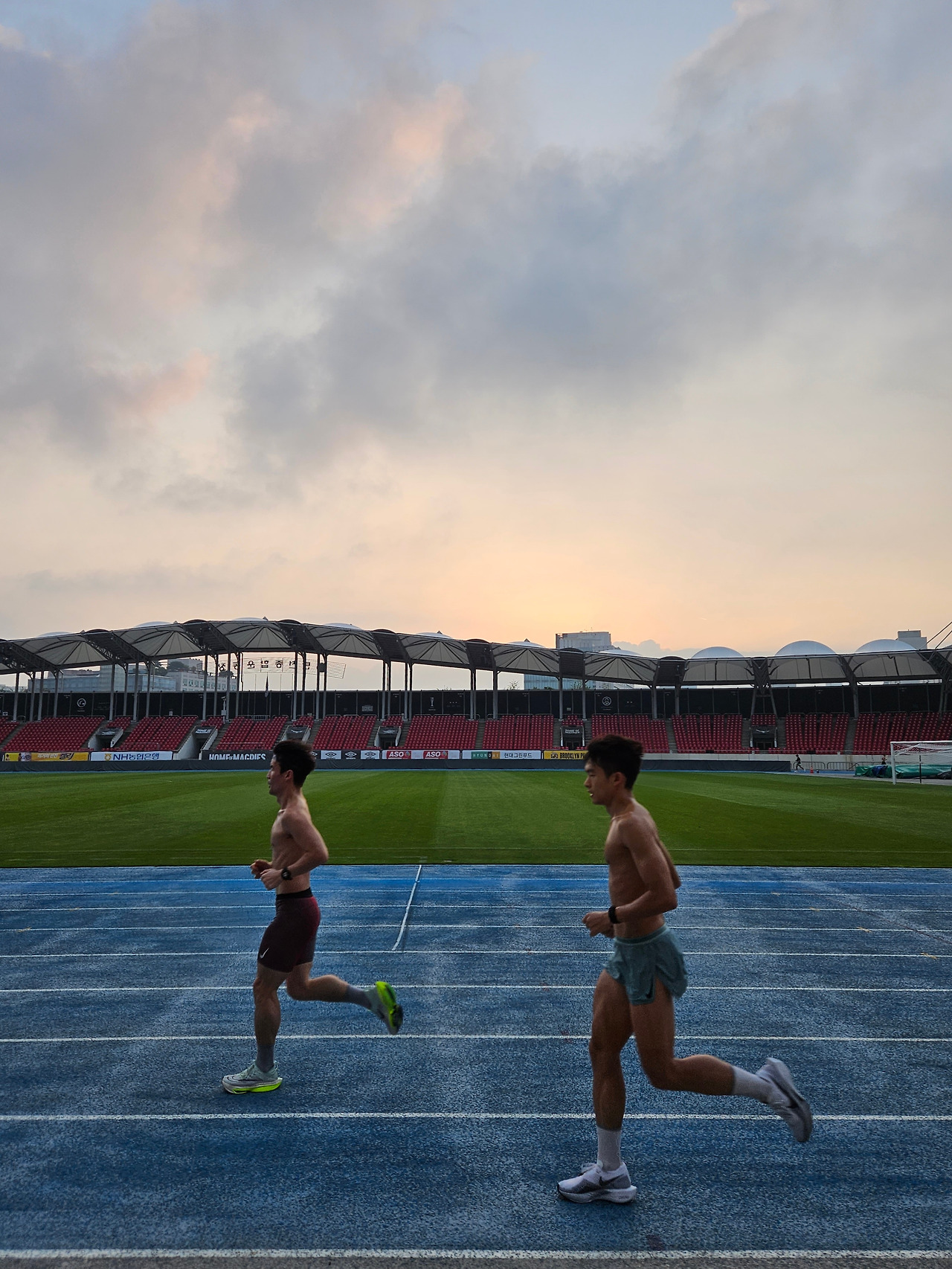 주말 포인트 훈련 때에는 LSD(Long Slow Distance, 긴 거리를 천천히 뛰는 연습) 또는 대회 목표 페이스에 가까운 지속 달리기 등으로 대회 거리와 페이스에 적응해 나아간다
