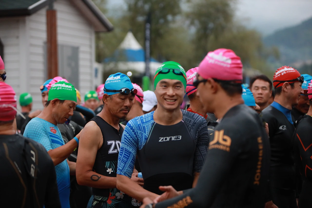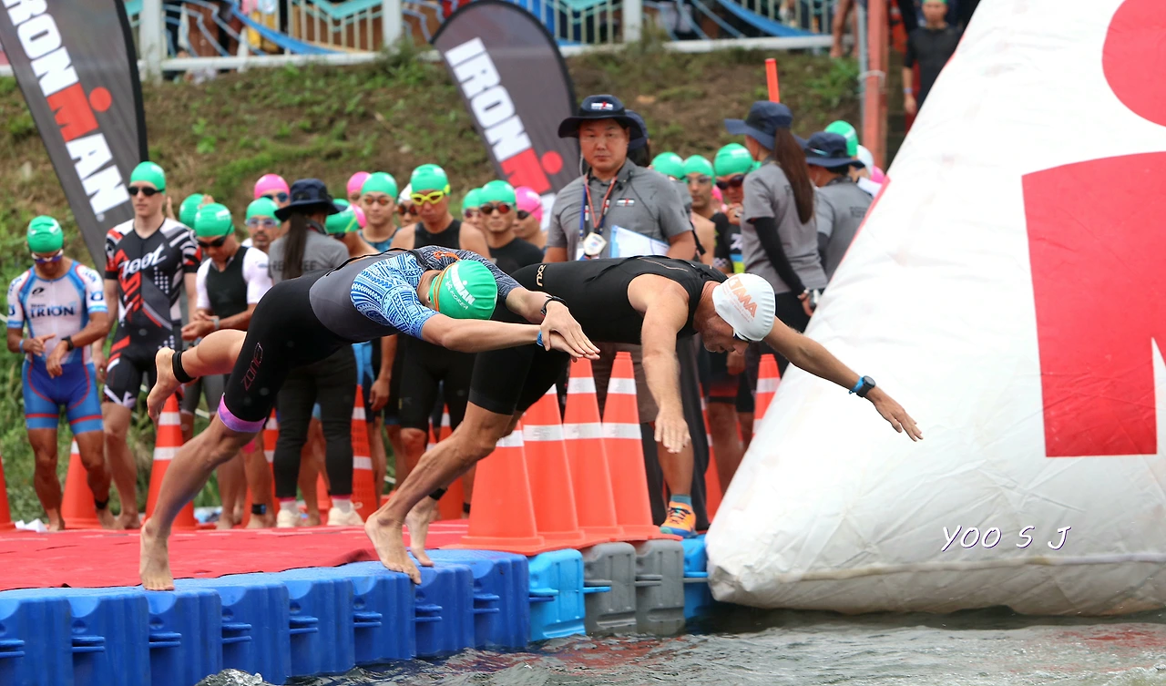 9월이 되어서도 여전히 더운 날씨 때문에 수영 종목은 결국 네오프렌 웻슈트 착용은 의무가 아닌 선택으로 진행되었다. 웻슈트를 착용하고 싶다면 입어도 된다. 다만, 입상과 월드챔피언쉽 출전권 대상에서는 제외된다. 나는 웻슈트를 착용하지 않았다