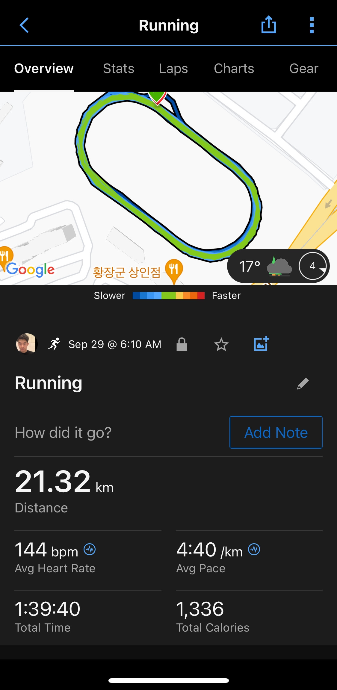 100분 달리기 프로그램이었다. 천천히 시작하여 1km당 4분 20초 페이스까지 올리는 내용이다. 아마 이틀 뒤 40,000m LSD 훈련을 위한 포석인 것 같았다. 빠르지 않은 페이스라 부담스럽지 않았고 무난히 운동을 마쳤다. 명절 당일임에도 트랙에는 나와 같은 동지들이 꽤 많았다. 어떤 분들은 명절이 그냥 휴식인 분도 있을 것이고, 몇몇 분들은 나처럼 차례와 성묘를 모두 지내지만 새벽 시간을 내어 오늘의 운동을 기어코 하는 분들일 것이다. 100분 달리기 완료