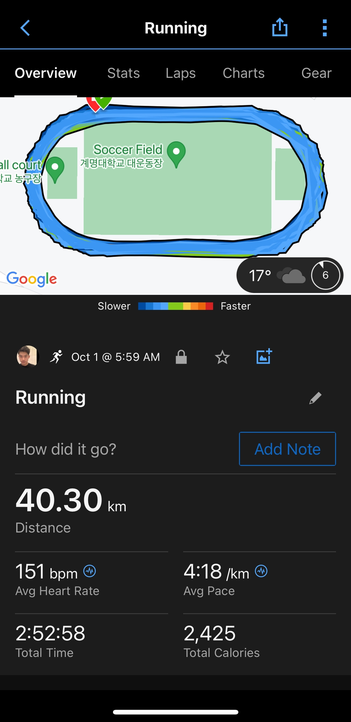 추석 다음날 그리고 그다음 날인 일요일에도 달렸다. 일요일에는 40,000m LSD(Long Slow Distance, 긴 거리를 천천히 달리며 거리에 적응하기)를 하였다. 혼자서 거의 3시간을 뛰어야 하는 지루하고 힘든 운동이었지만 어쩌면 보스톤 대회와 영화 덕분에 좋은 마음으로 무사히 마칠 수 있었다